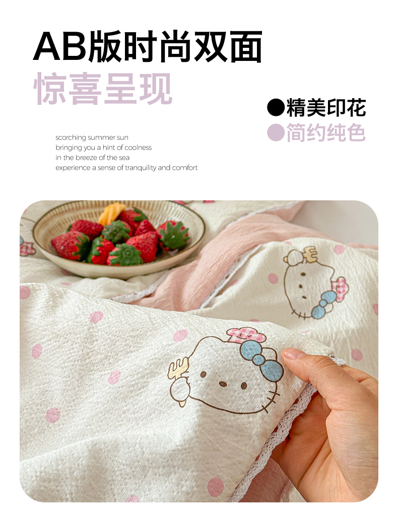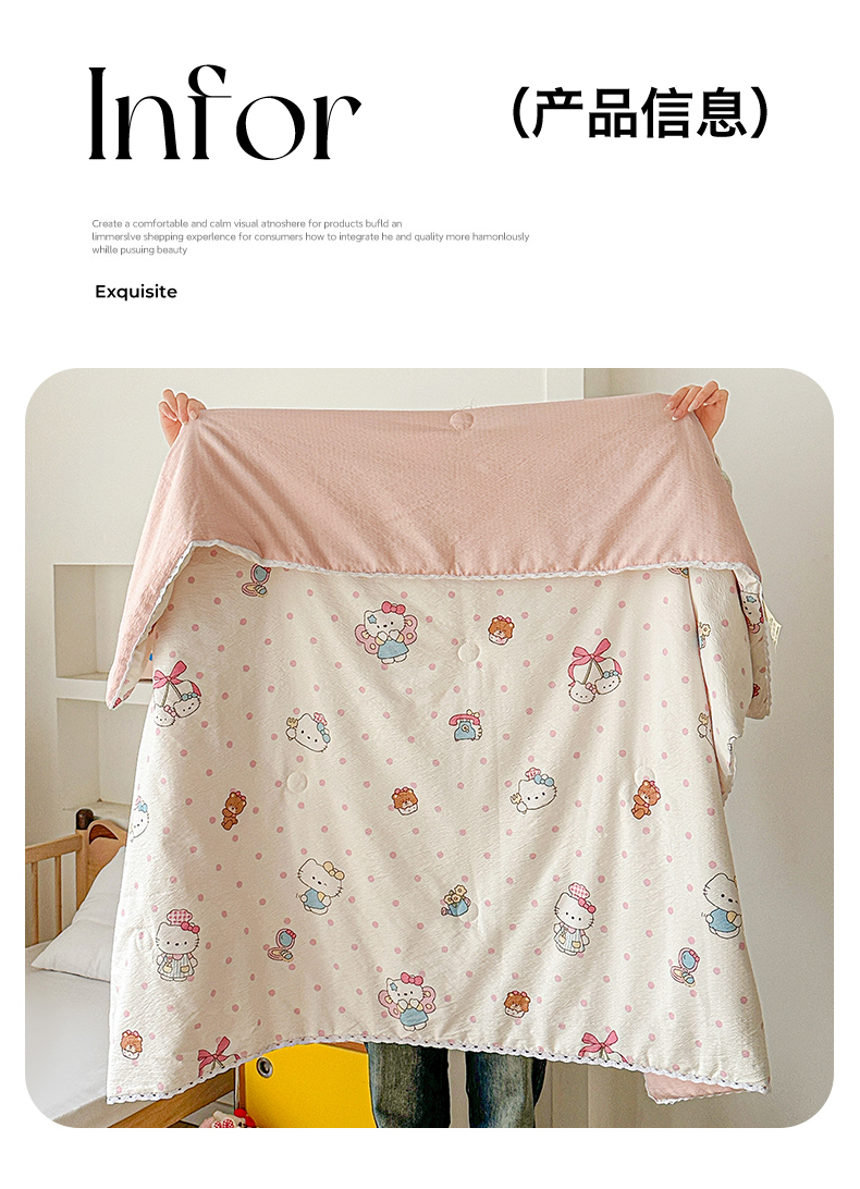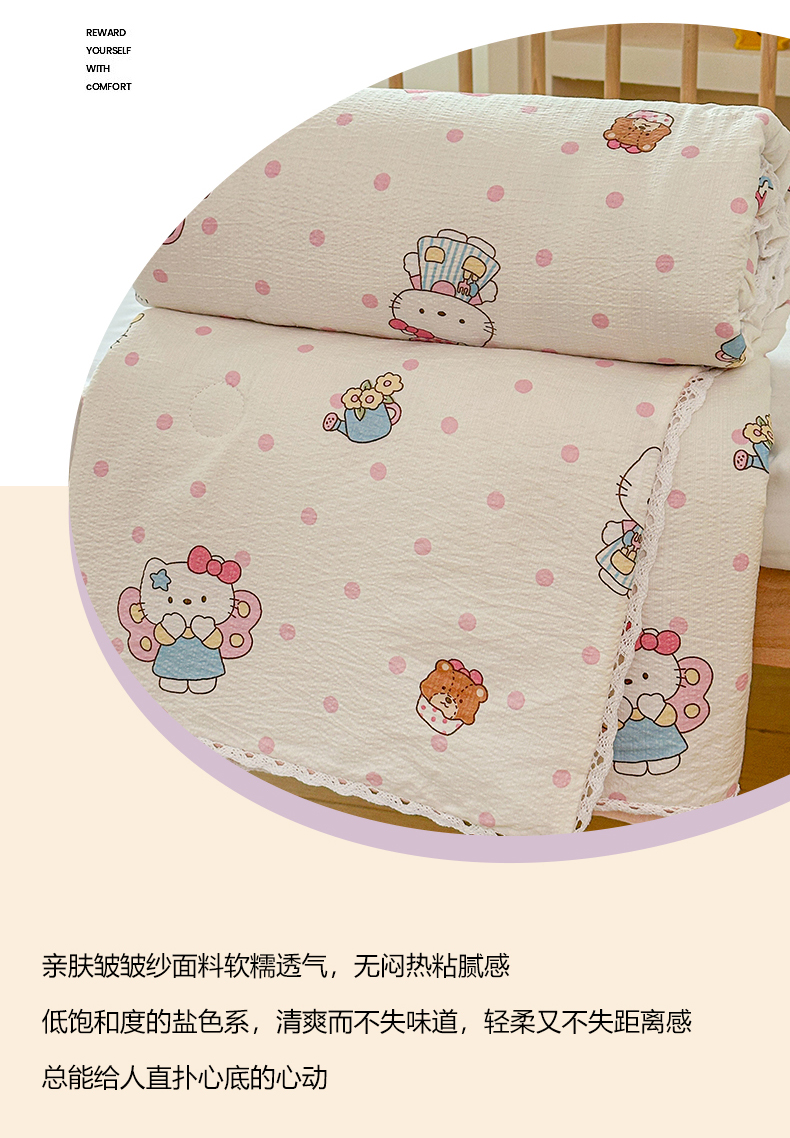 商品名称:名兮家居 2026新款儿童A类皱皱纱夏被夏凉被空调被 天使猫咪