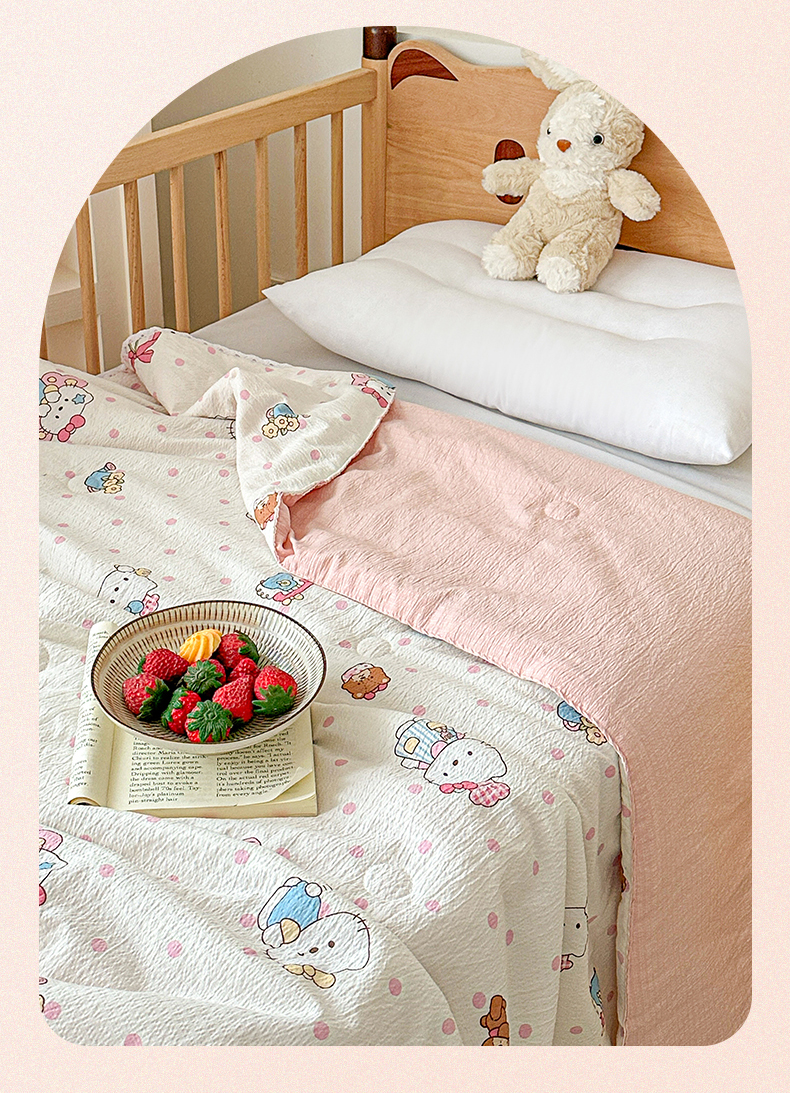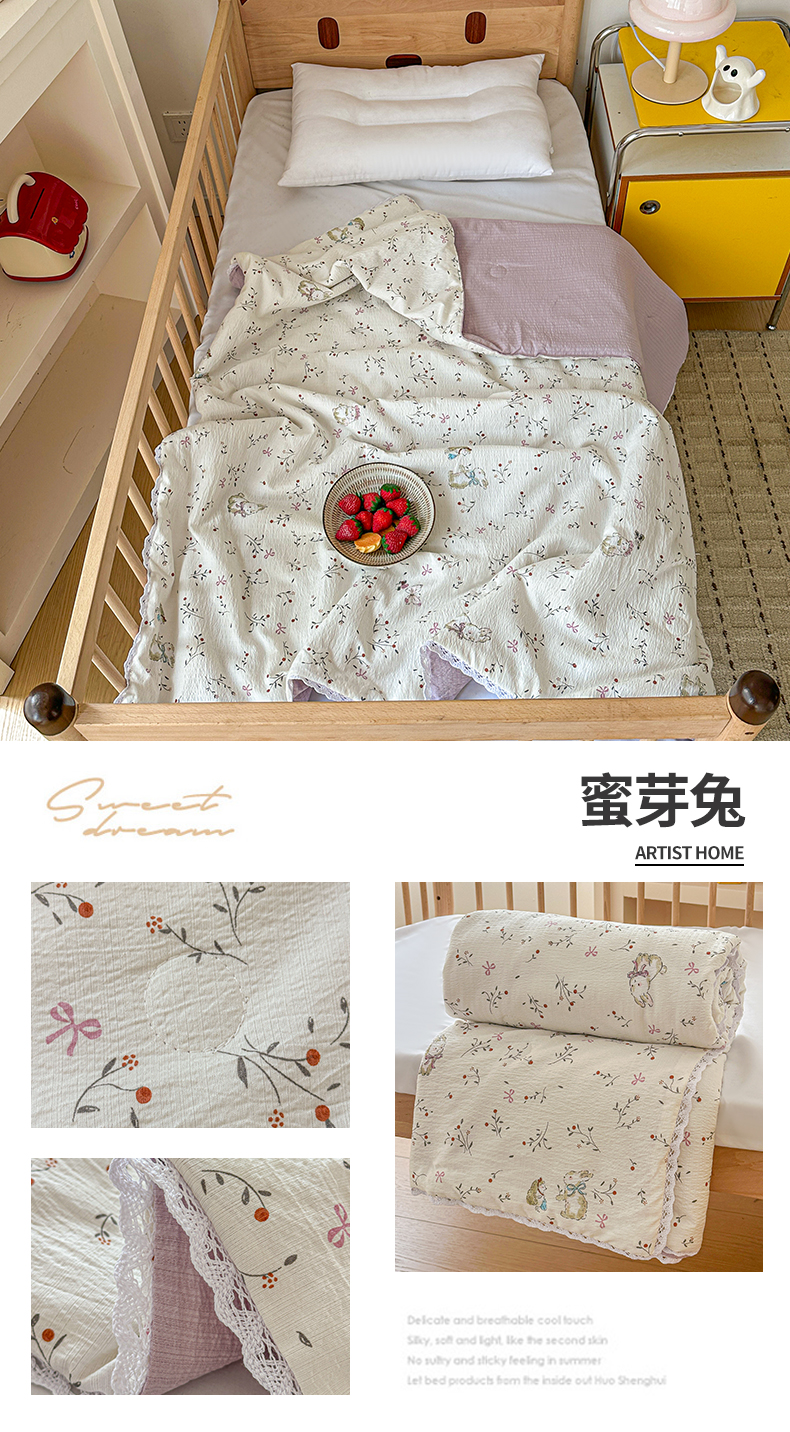 (总)名兮家居 2026新款儿童A类皱皱纱夏被夏凉被空调被,彩色蝴蝶结,粉色小兔,兰香入梦,美娜,萌趣,蜜芽兔,泡芙狗,泡泡兔,天使猫咪,心动波点,音乐家,组合图仅供展示不可下单