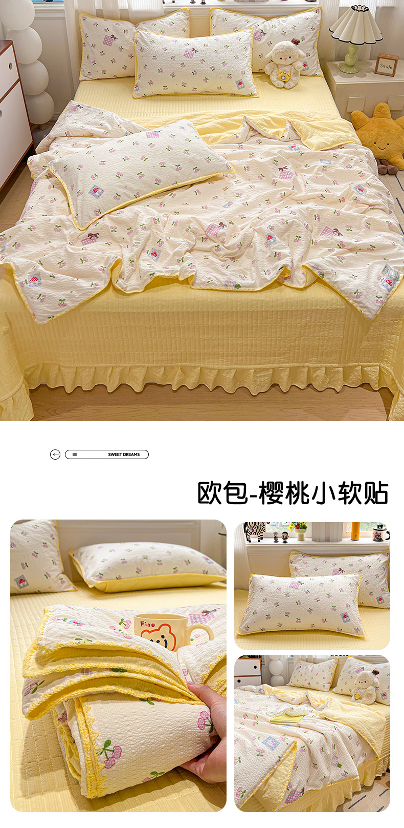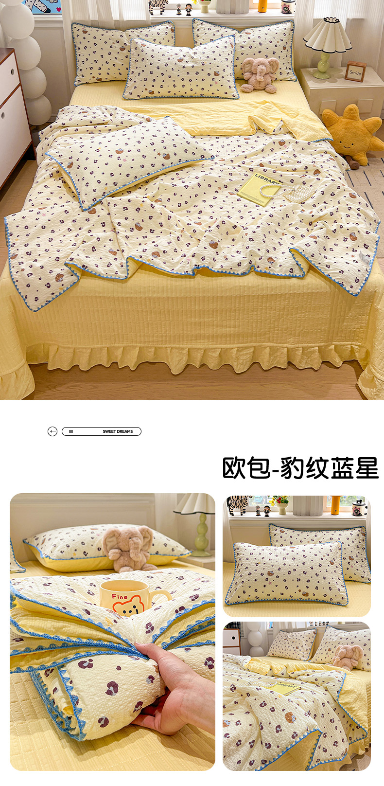(总)富米莱(原臻工厂) 2026新款超温柔高弹线密拷花边款泡芙双层纱夏凉被床盖床裙四件套,密拷花边-波西米亚小熊,密拷花边-彩点小熊,密拷花边-粉糖小兔,密拷花边-红豆生南国,密拷花边-红马小骑士,密拷花边-花屿蓝梦,密拷花边-黄油小碎花,密拷花边-蓝蝴蝶结熊,密拷花边-魔法星星,密拷花边-奶黄草莓,密拷花边-南瓜奶豹,密拷花边-青提花蝶,密拷花边-小粉花,密拷花边-樱桃小猫,密拷花边-紫雾小兔,组合图仅供展示-不可下单