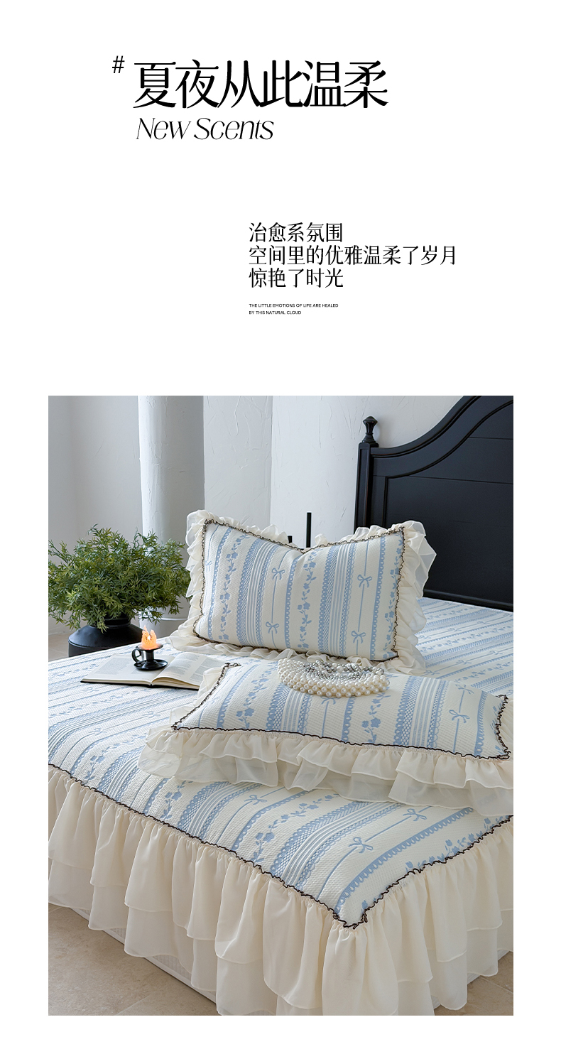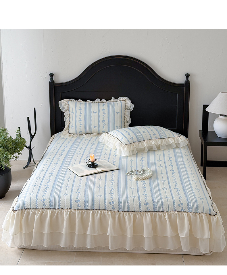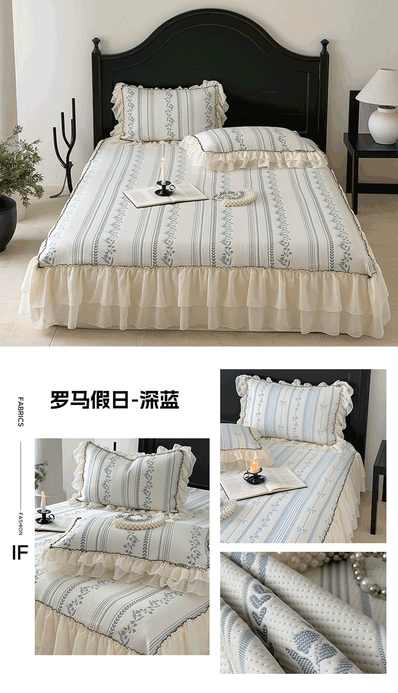 商品名称:山茶家居-原创设计(原山茶家纺) 2026新款A类提花华夫格床盖款凉席三件套-罗马假日 罗马假日-浅蓝