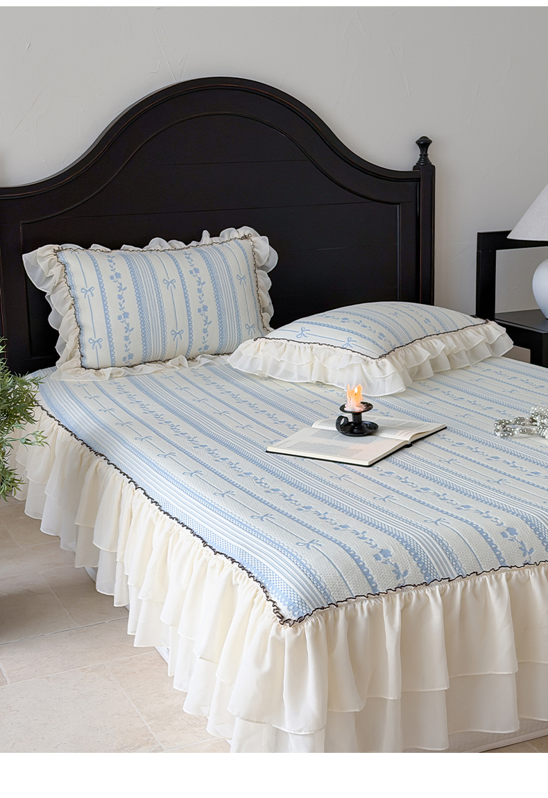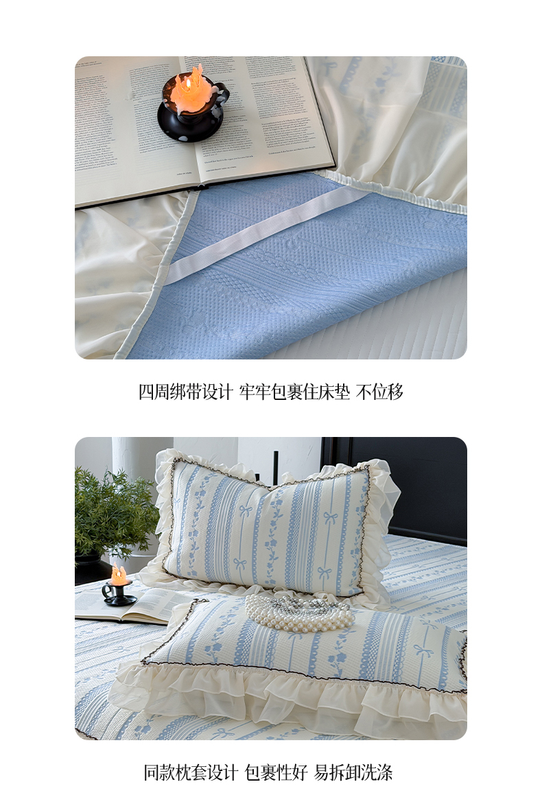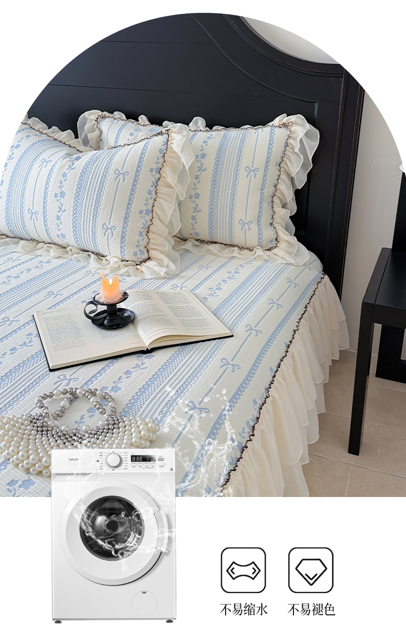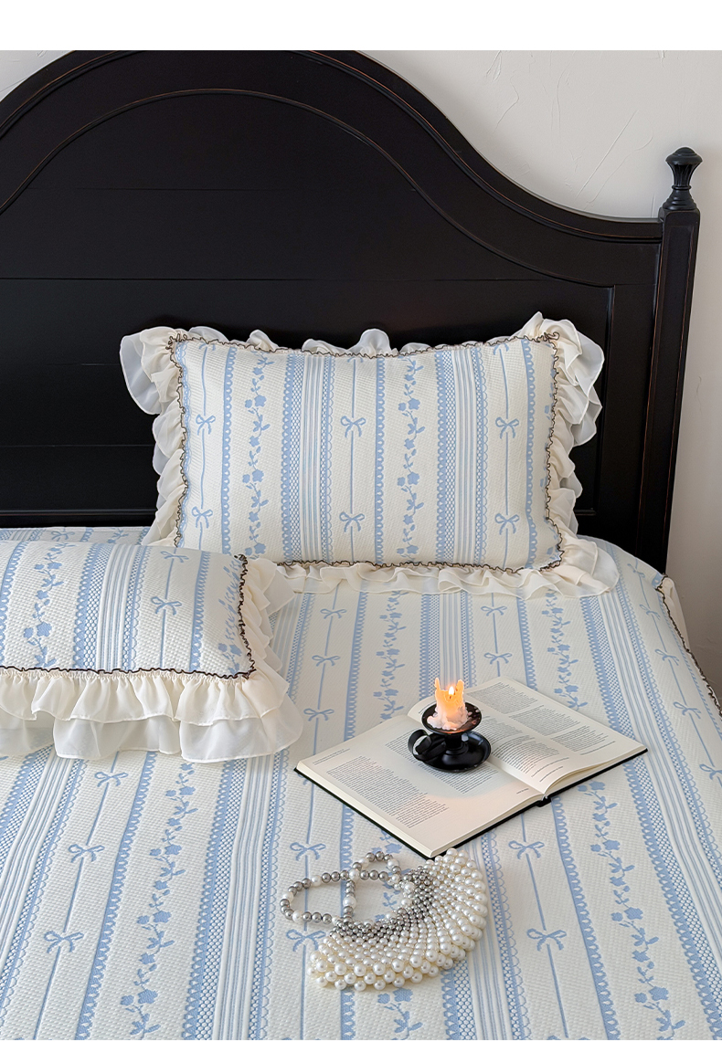 商品名称:山茶家居-原创设计(原山茶家纺) 2026新款A类提花华夫格床盖款凉席三件套-罗马假日 罗马假日-浅蓝