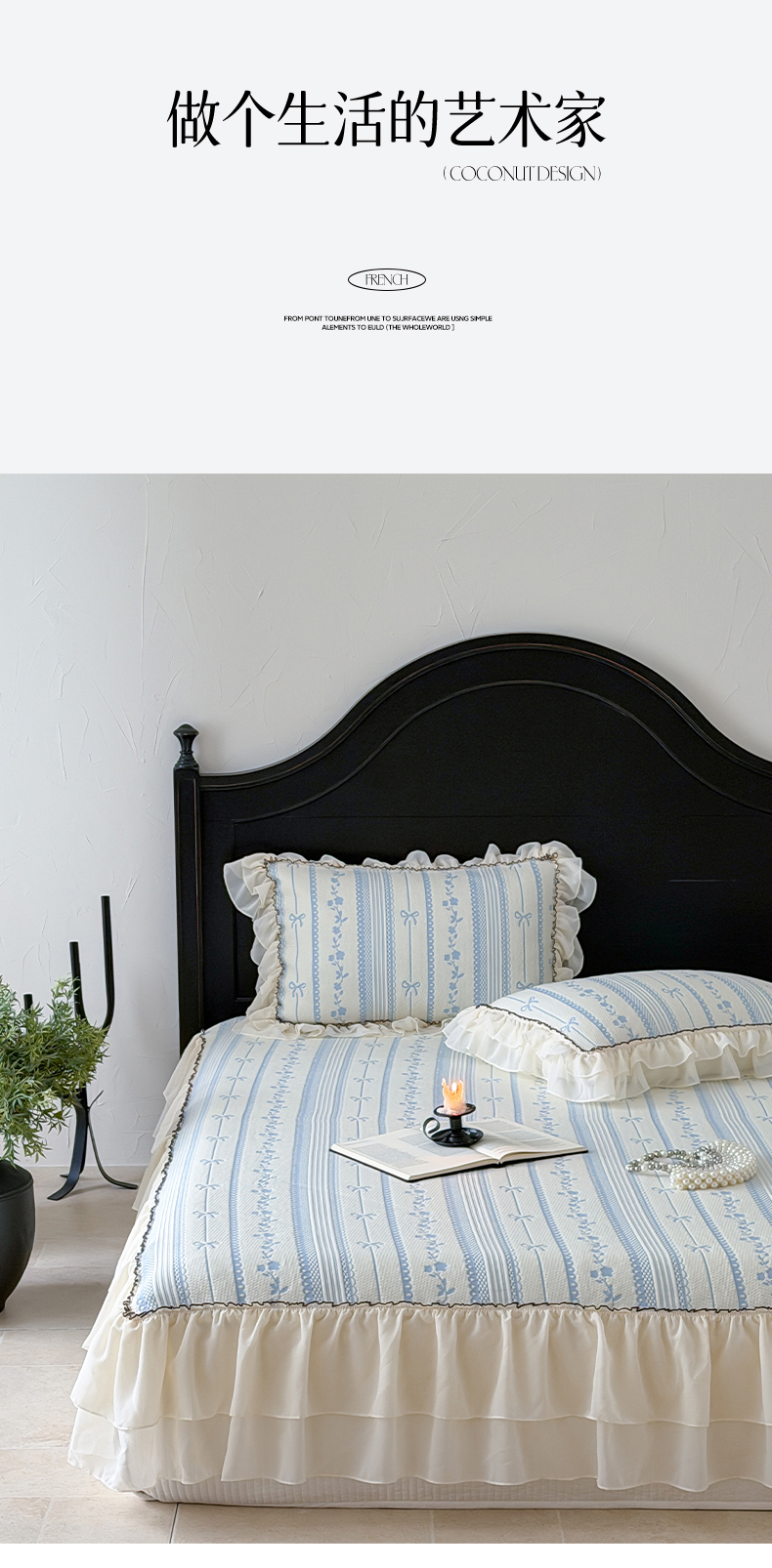 (总)山茶家居-原创设计(原山茶家纺) 2025新款全棉夹棉床裙,白色,粉色,奶黄,天蓝