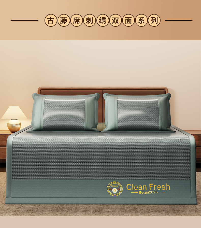 当前位置: 91家纺网 > 商品网购 > 床上用品 > 凉席 > 藤席 > 怡源梦 2026新款古藤席刺绣双面系列 古藤席-绿色