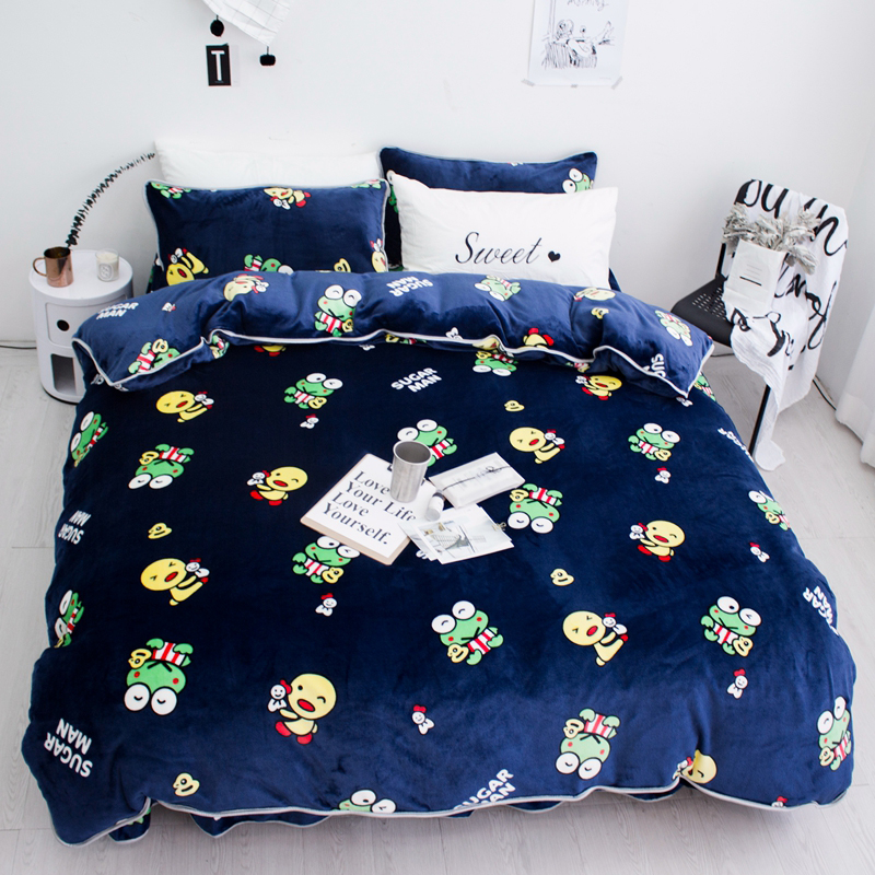 顾里家纺 加厚保暖牛奶绒套件 青蛙