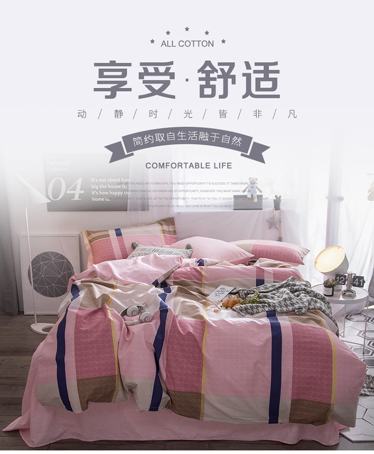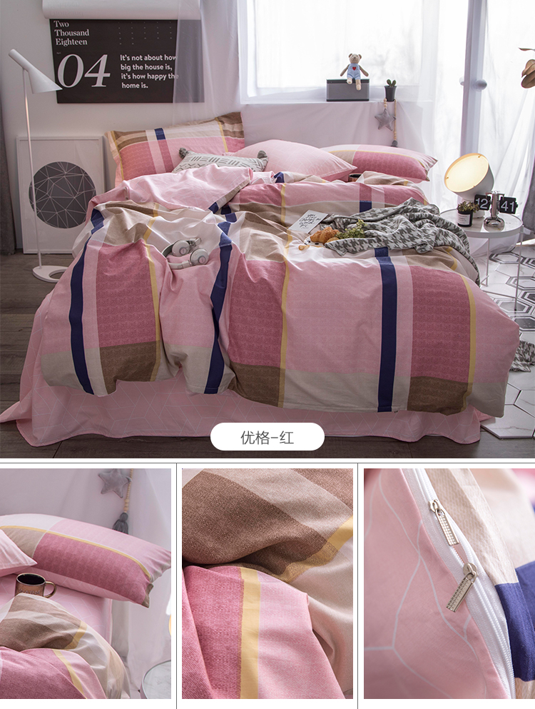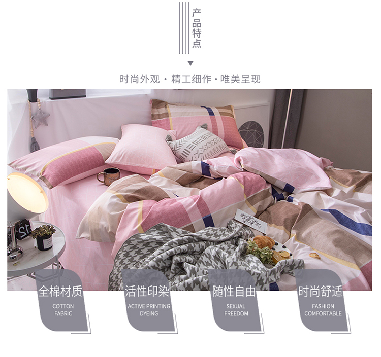 商品名称: 芃成家纺 2020全棉133X72圆网四件套 优格-粉