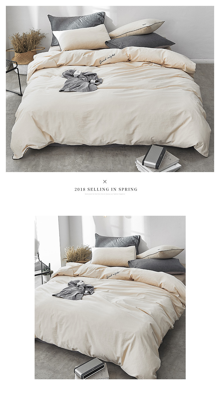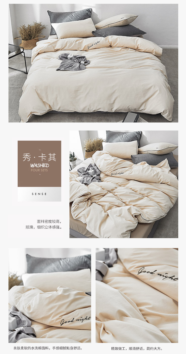 2018秋冬新款色织简易绣四件套 秀-卡其