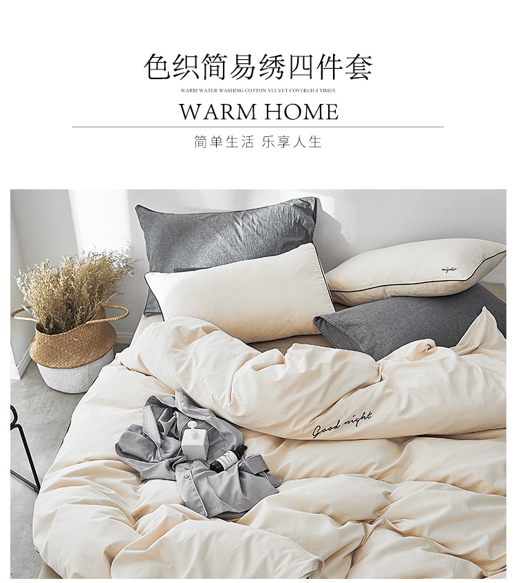 商品名称:2018秋冬新款色织简易绣四件套 秀-卡其