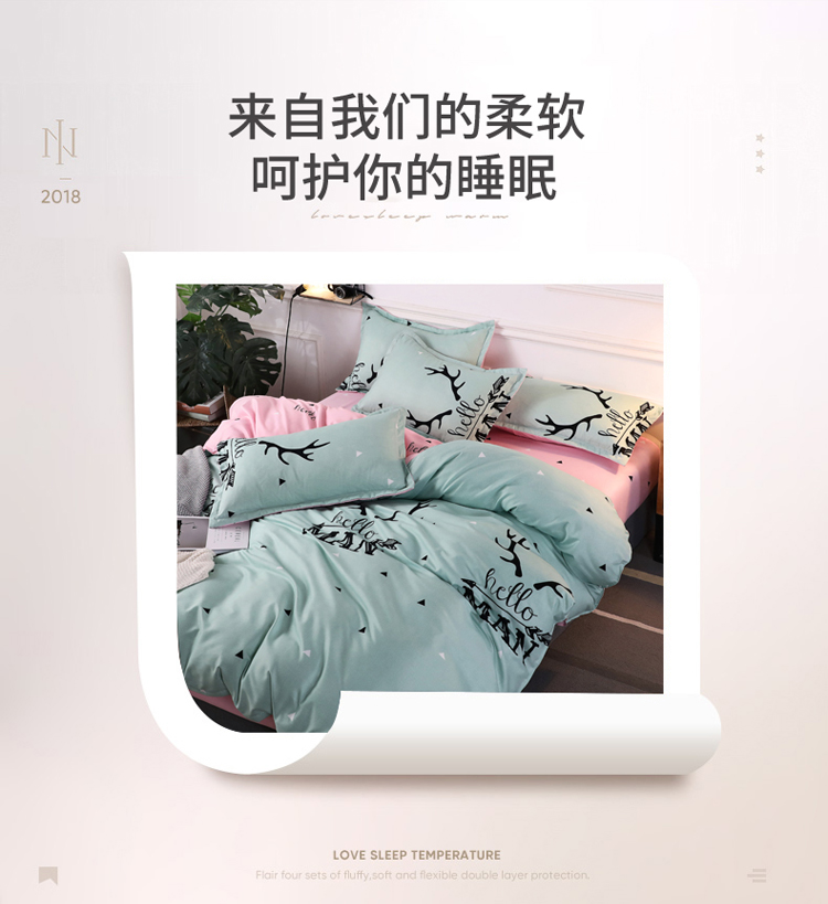 米粒家纺 2018新款亲肤活性印花四件套原野