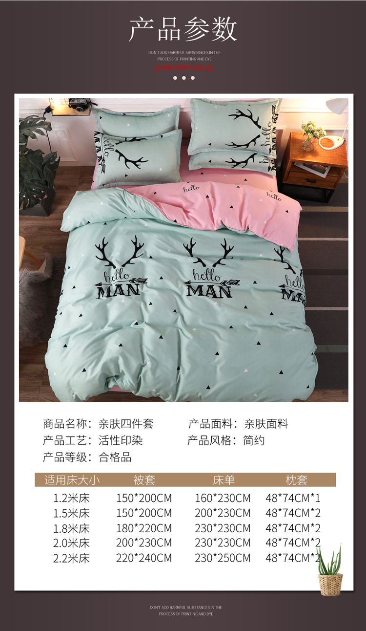 商品名称:米粒家纺 2018新款亲肤活性印花四件套原野