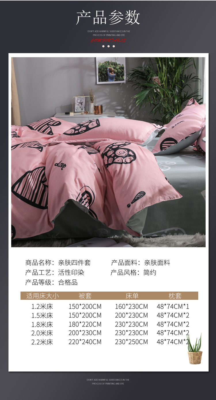 商品名称:米粒 2019新款芦荟棉活性印花套件 粉红佳人
