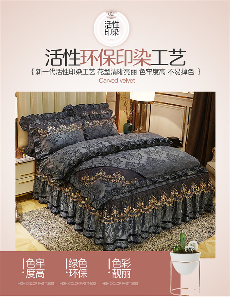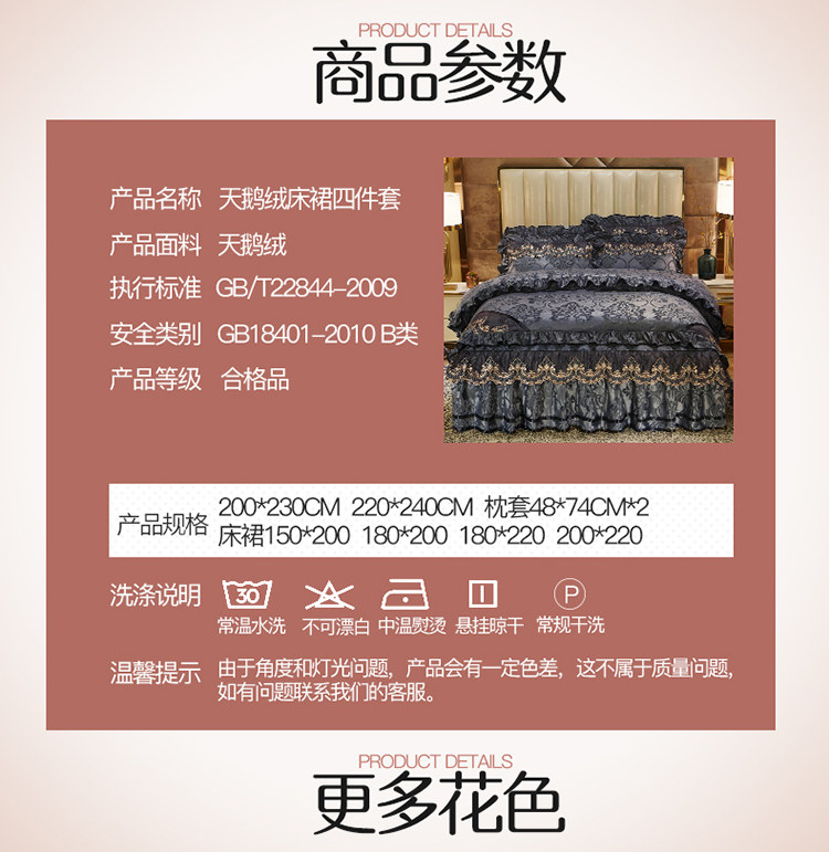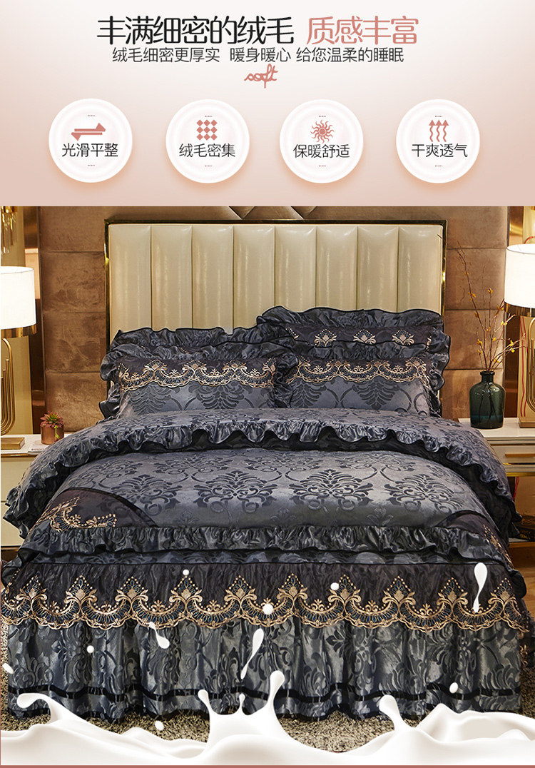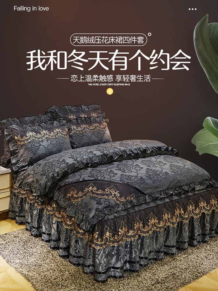 商品名称:网红馆 2025新款天鹅绒盛世经典床裙四件套 灰色