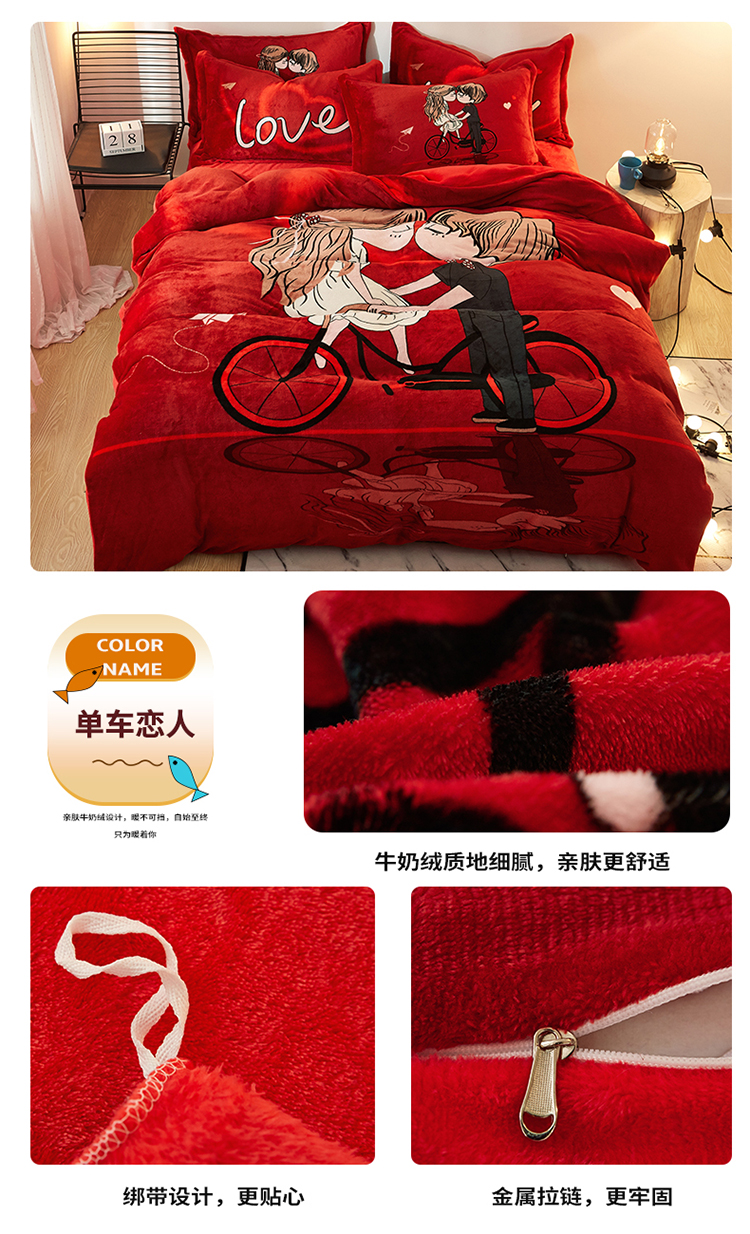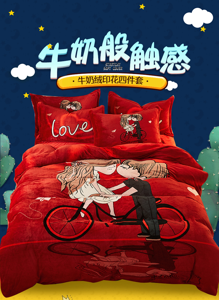 (总)KT猫直营店2024新款卡通法莱绒牛奶绒情侣四件套,1ove,草莓羊,单车恋人,小红帽,小猪嘟嘟,小祖宗,仰望天空,咱们结婚吧,赚钱养家,爱的告白,出类拔萃,高情远致,黑白狗,黑白之吻,狐狸,火烈鸟,静如思楚,蓝鲸,鹿先生,猫小妖,萌萌猫,米奇点点,思念,星雨心愿,熊之恋,遇上对的你