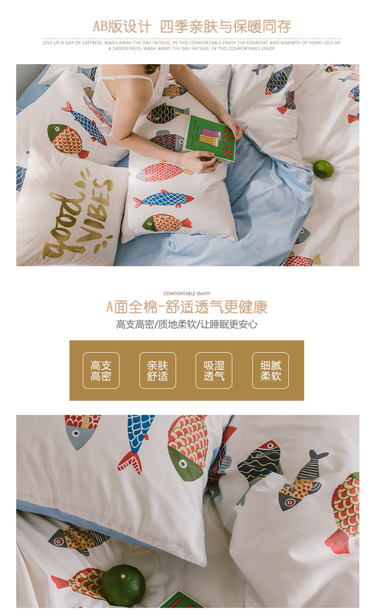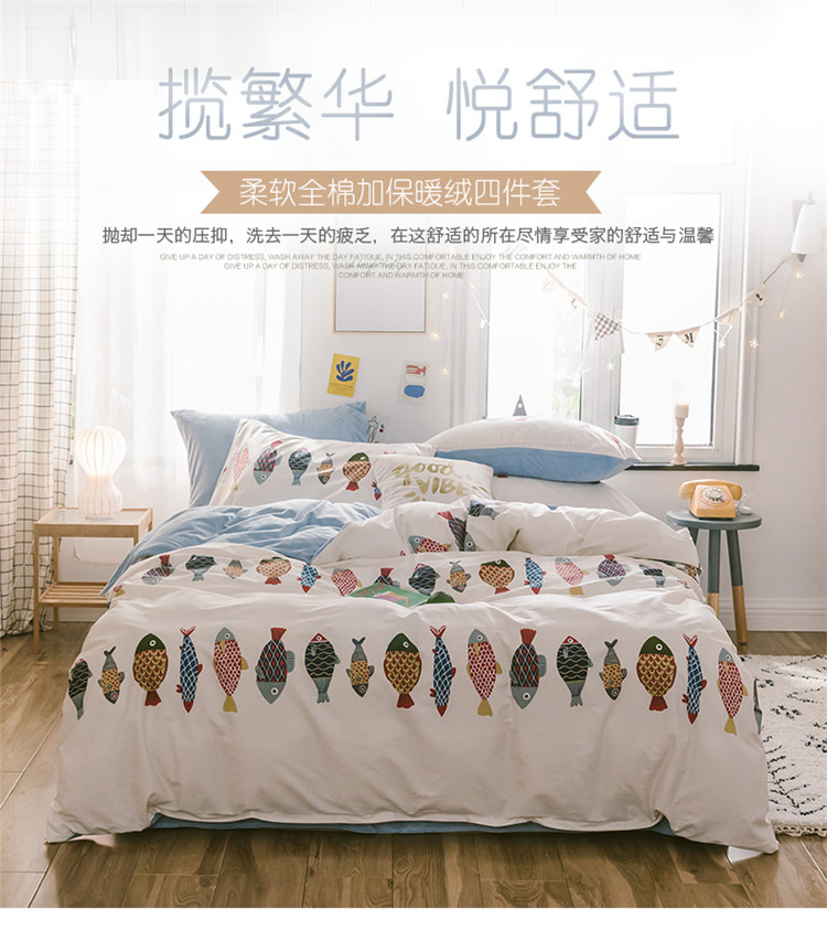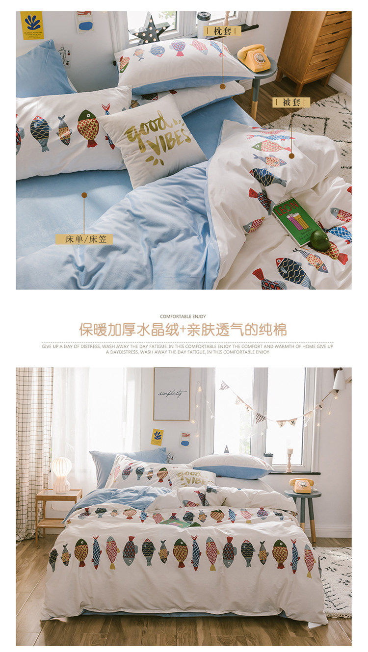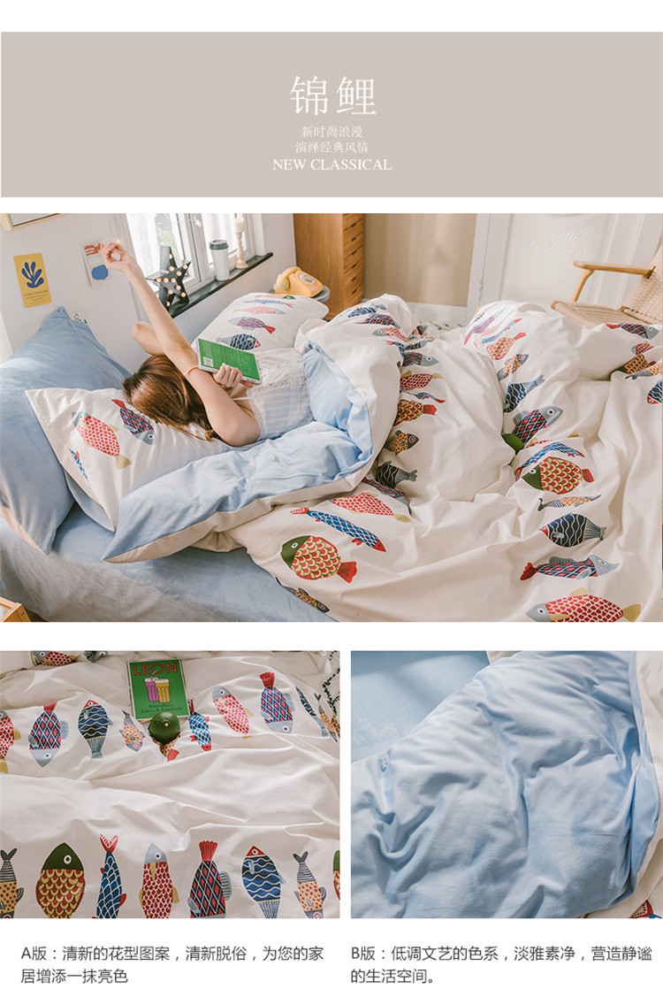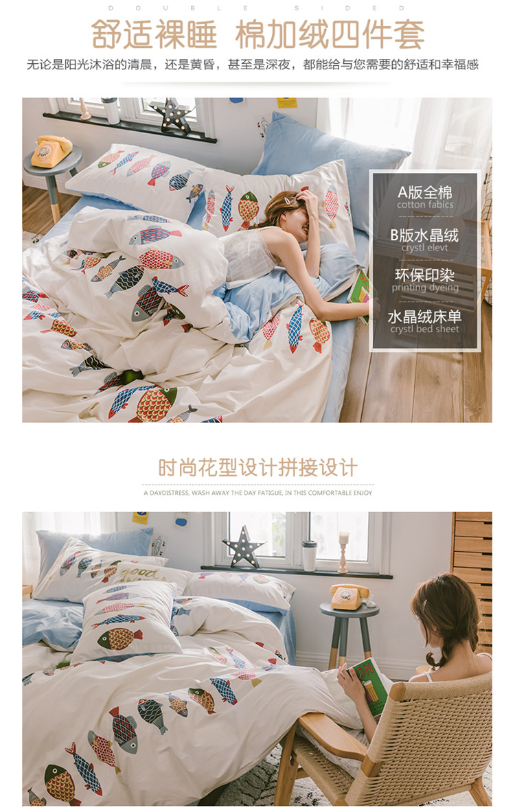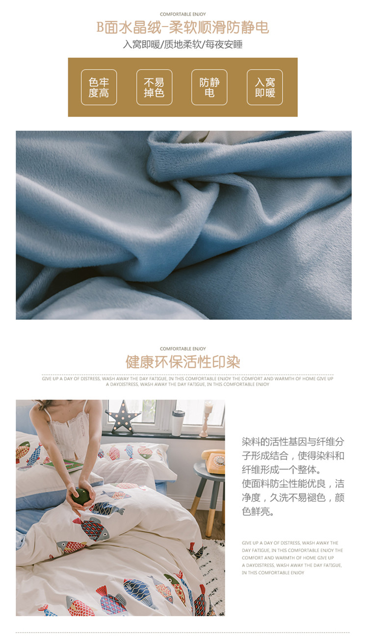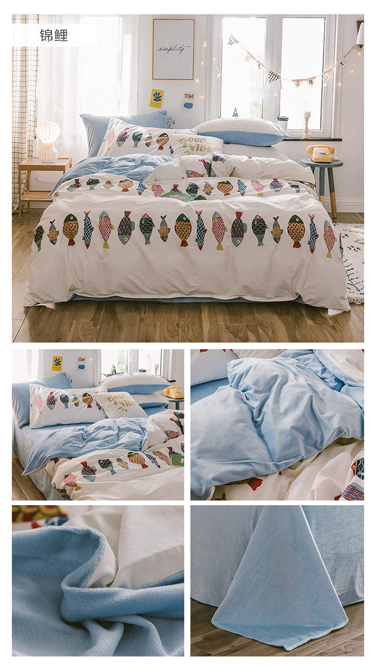 商品名称:窝米 2019新款圆网棉加绒四件套床单款 锦鲤