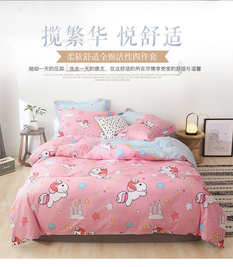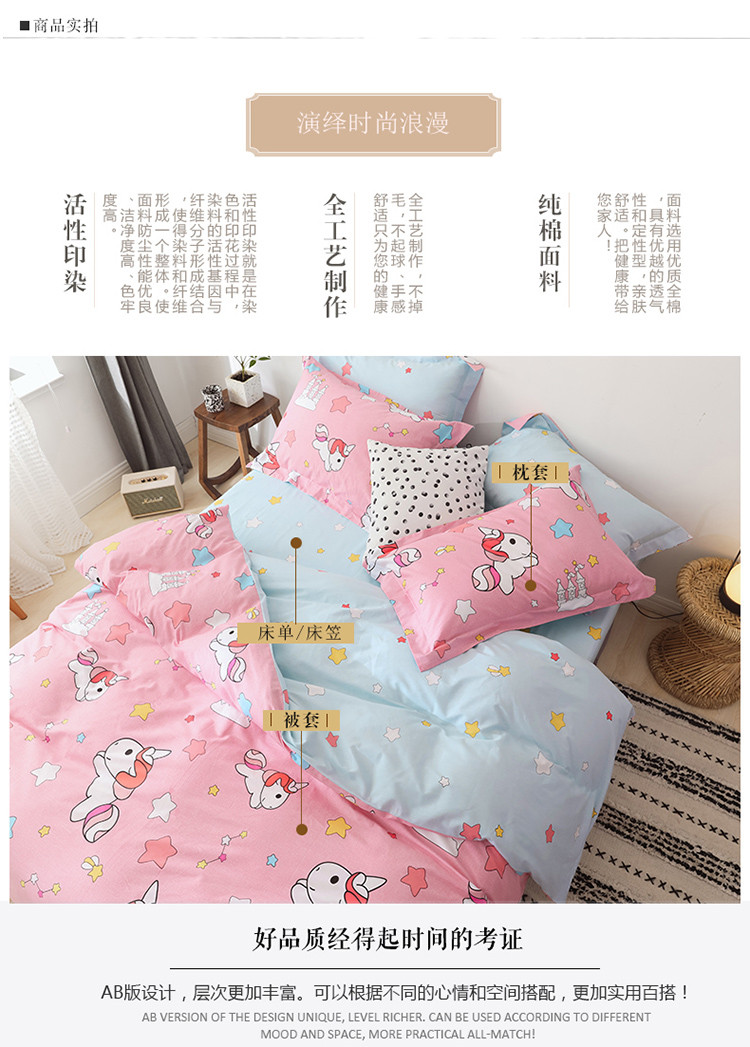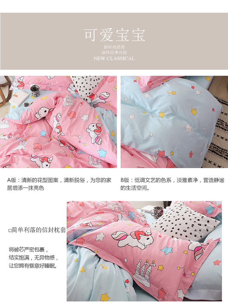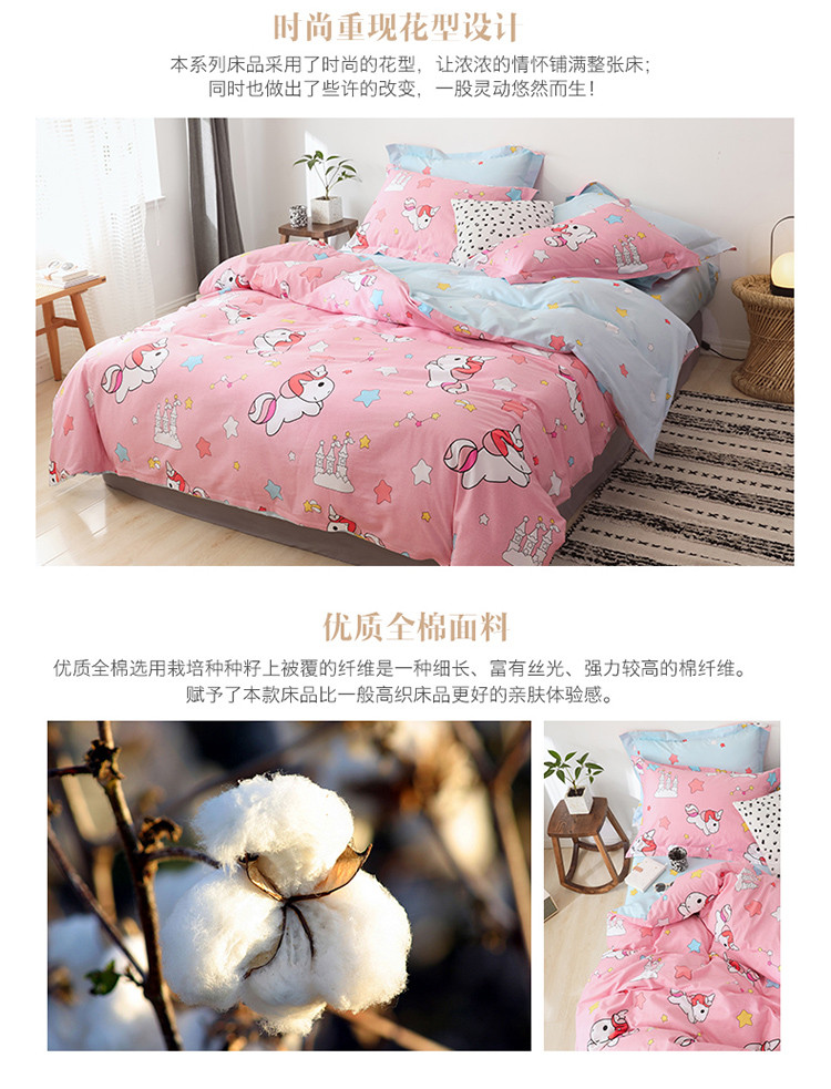 窝米 2019全棉13372卡通花卉系列四件套床单款可爱宝宝