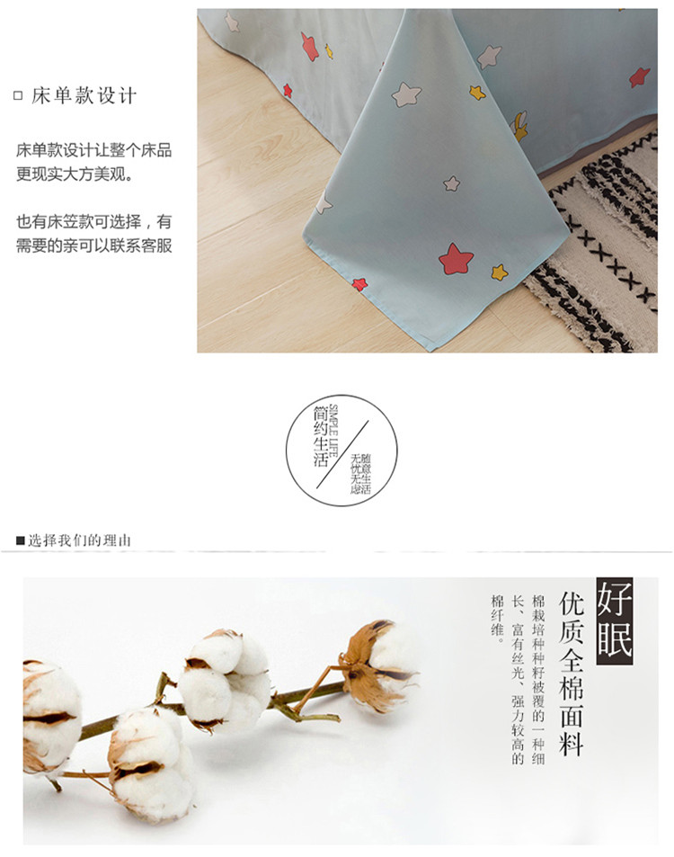 窝米 2020春夏新品全棉13372四件套小波西风系列小花花,小花花