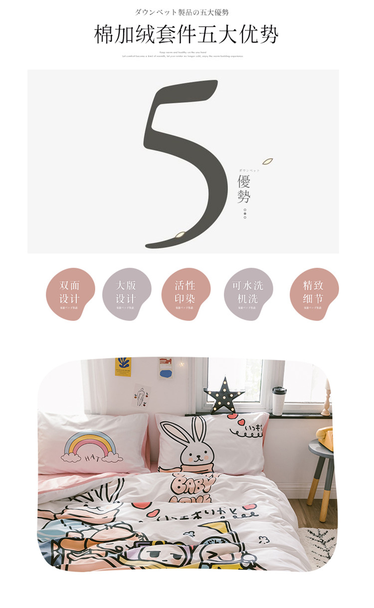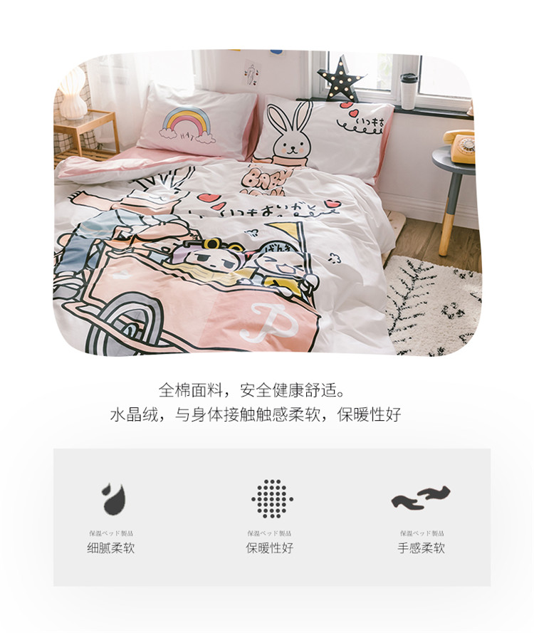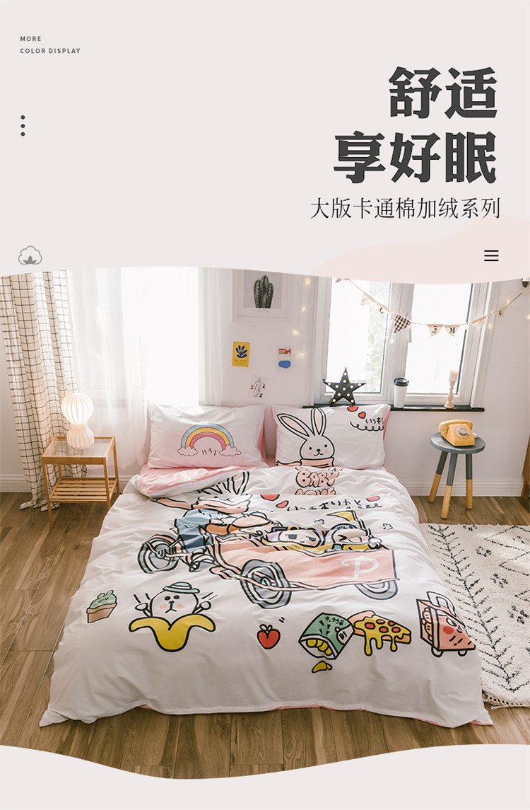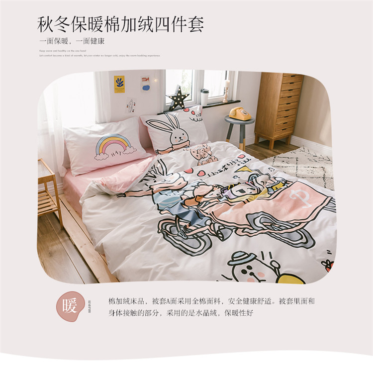 商品名称:窝米 2019大版二次元卡通棉加绒四件套床单款 彼得兔