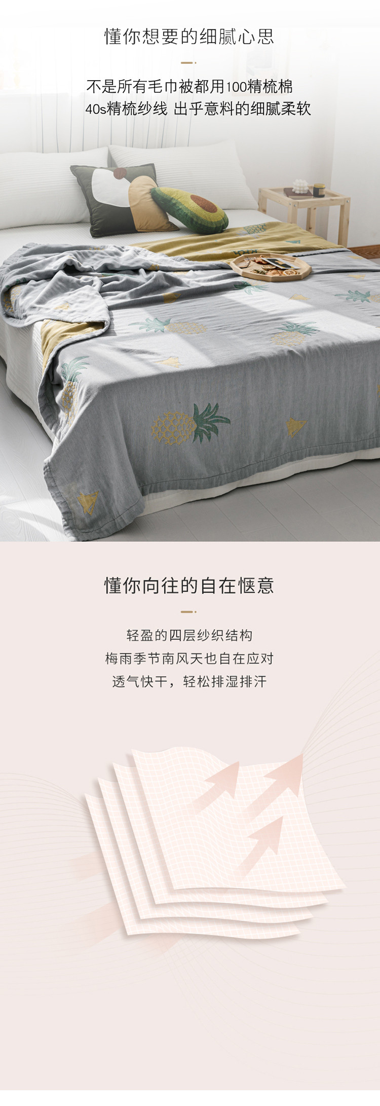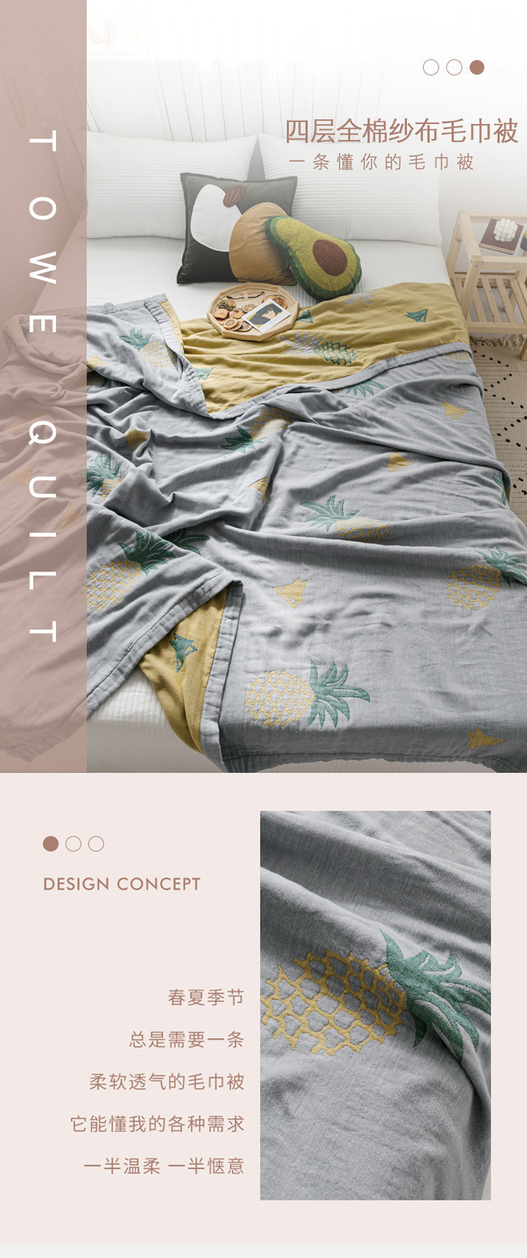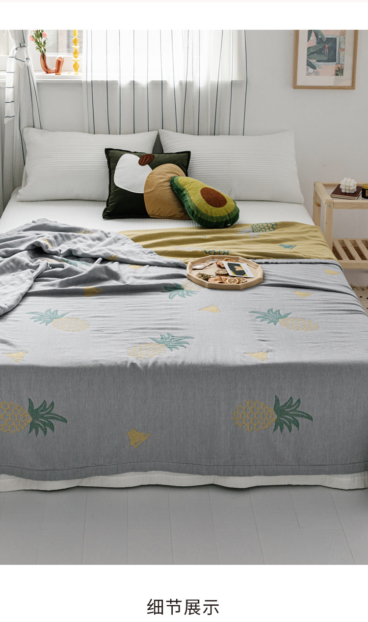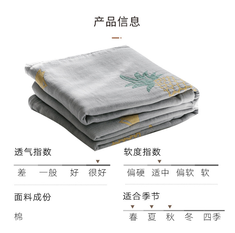 商品名称:朴尔 2020年新款水果系列四层纱布毛巾被 菠萝与三角-灰黄