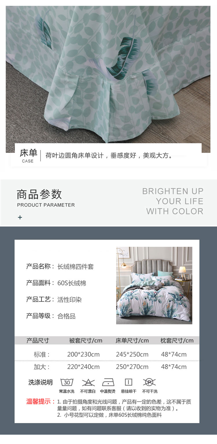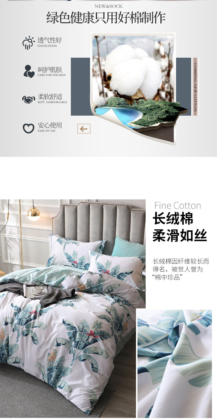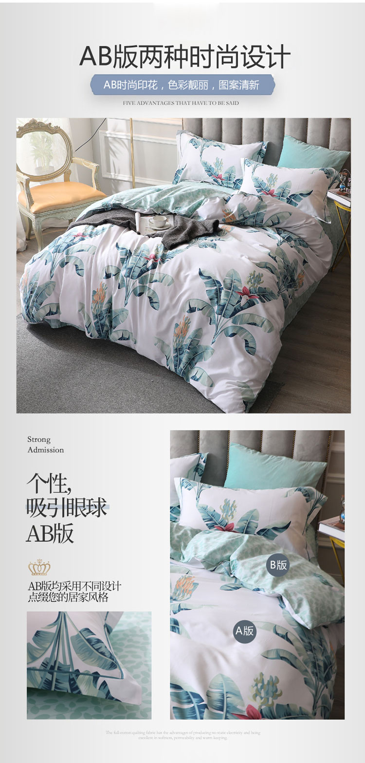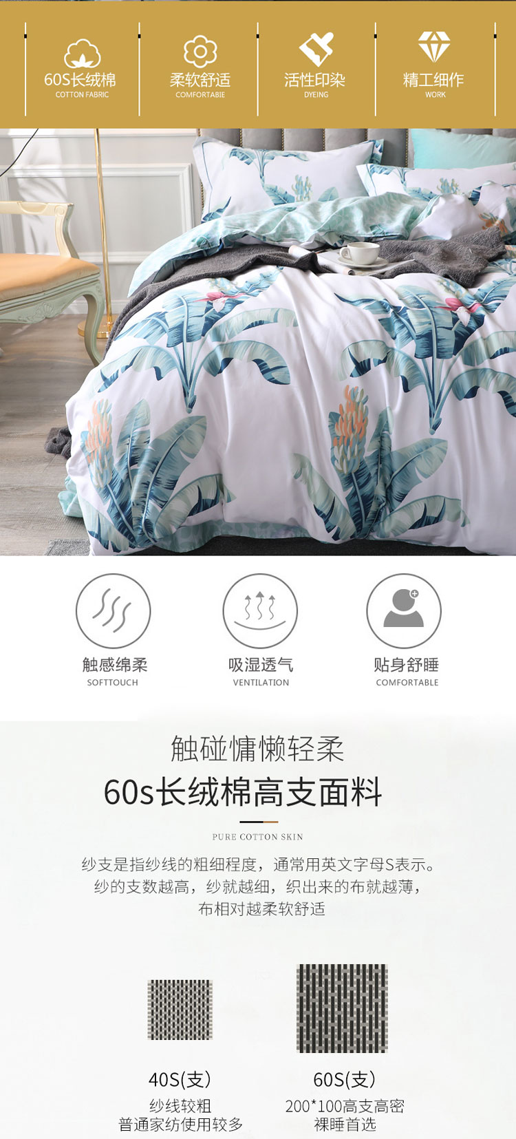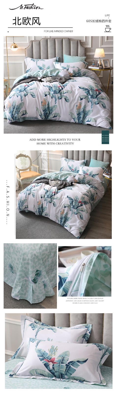 商品名称:用心 2020新款60s全棉长绒棉印花ab版四件套北欧风