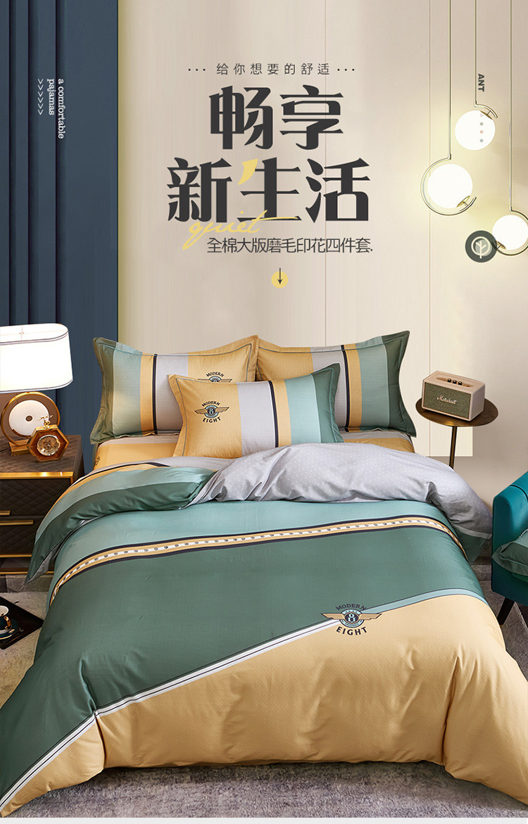商品名称:雲归梦 2020新款全棉生态磨毛大版四件套 凡绅-绿