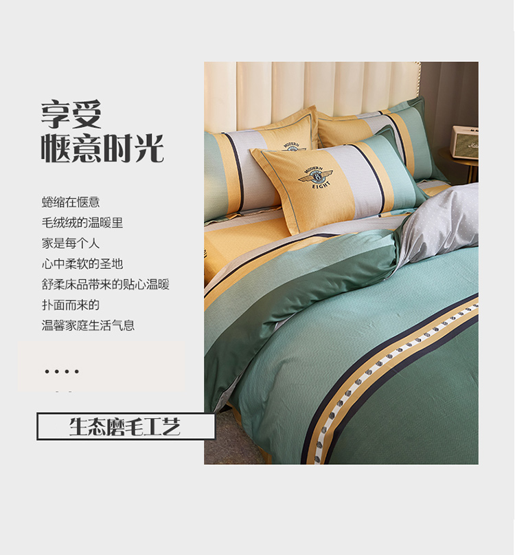 雲归梦 2020新款全棉生态磨毛大版四件套 凡绅-绿