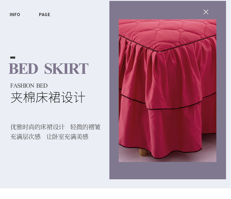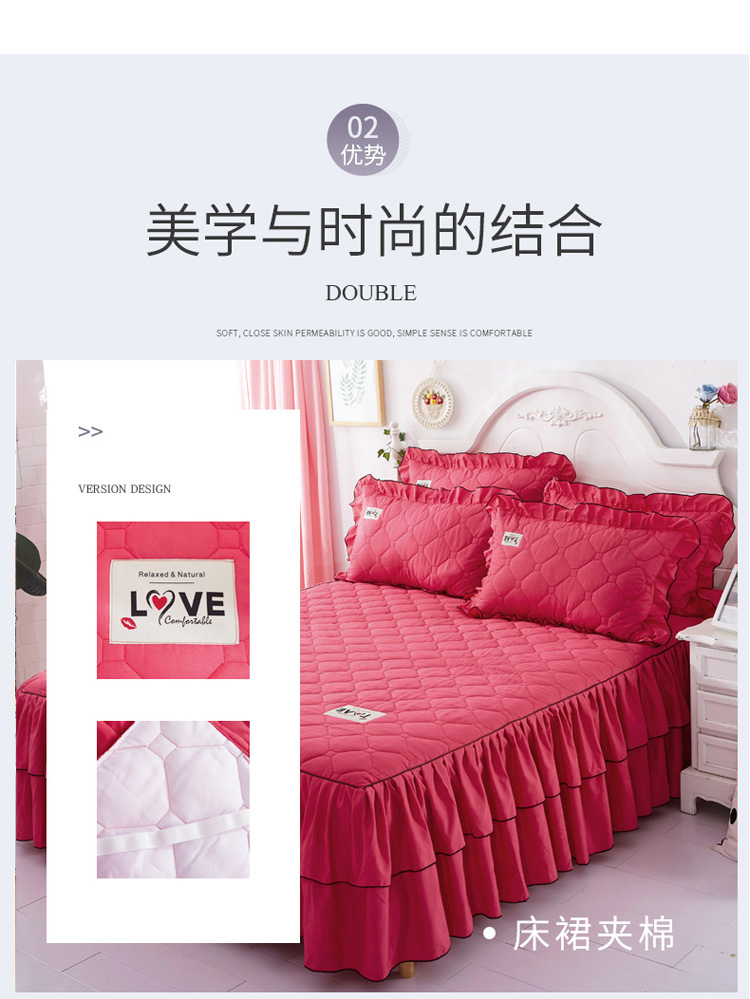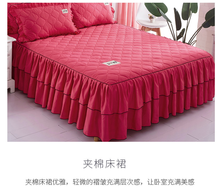(总)艾裙海 2025新款90克磨毛夹棉绗缝床裙,粉色,大红色,米白色,深灰色,紫色,藏青色,宝蓝色,浅灰色,粉玉色,豆沙红