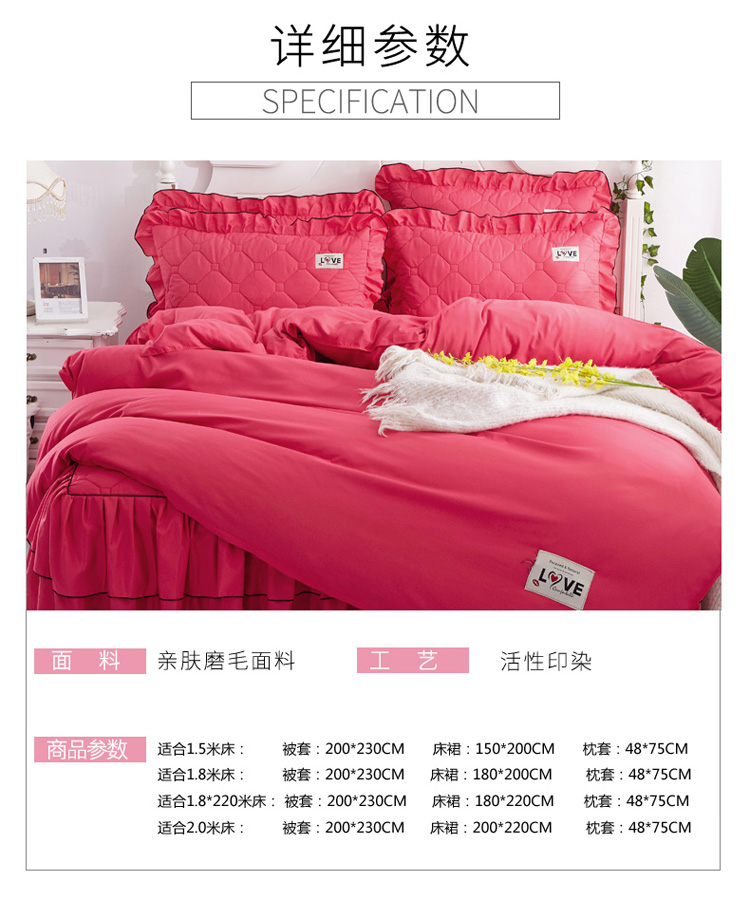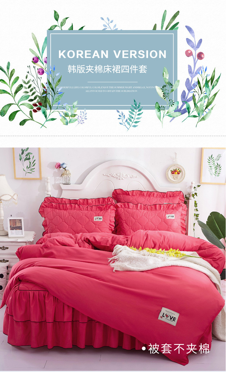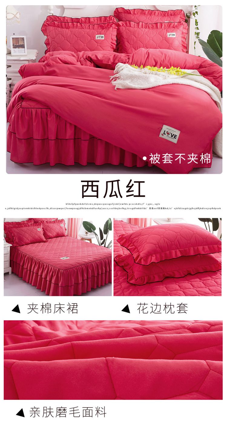 商品名称:艾裙海 2025新款床裙款半夹棉四件套 西瓜红