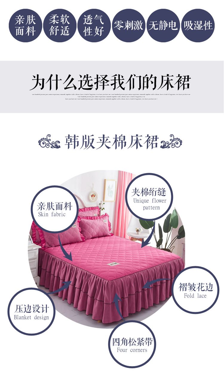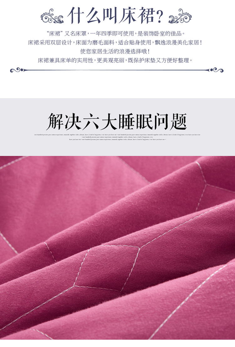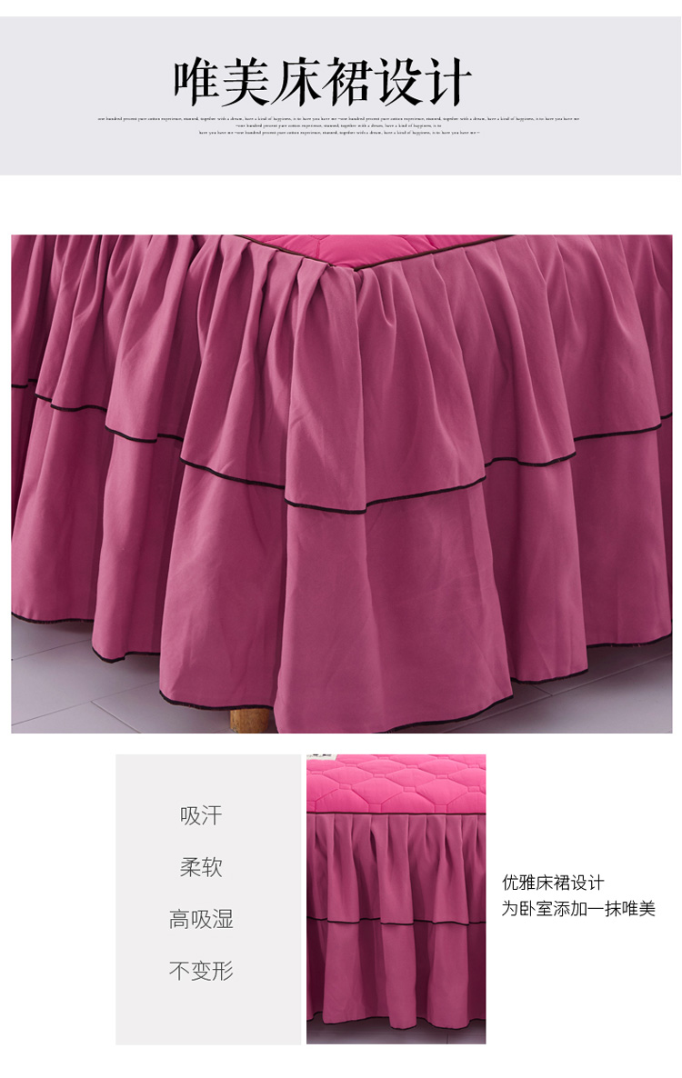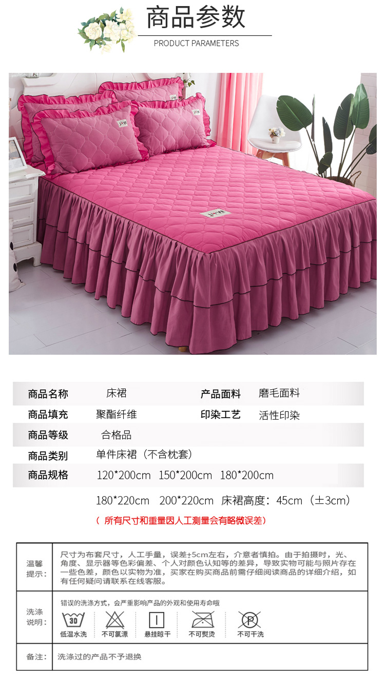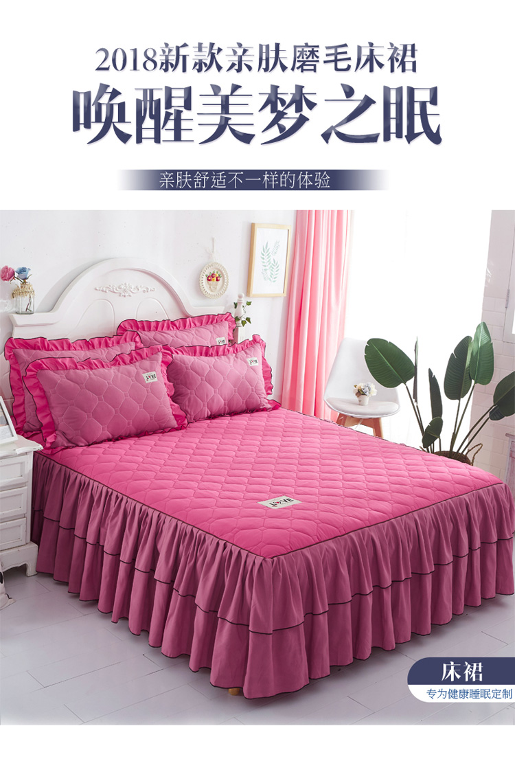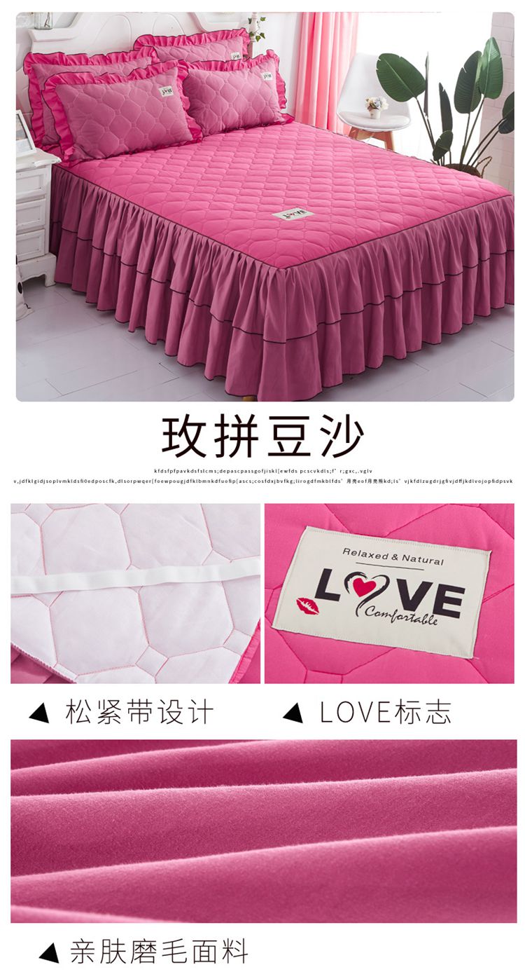 (总)艾裙海 2025新款90克磨毛夹棉绗缝床裙,粉色,大红色,米白色,深灰色,紫色,藏青色,宝蓝色,浅灰色,粉玉色,豆沙红