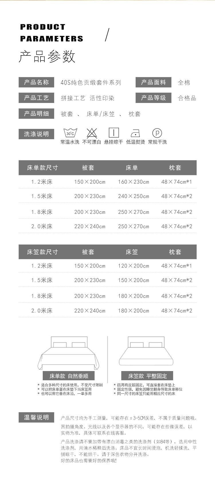 商品名称:(总) 寐眠 2020新款40s长绒棉纯色四件套