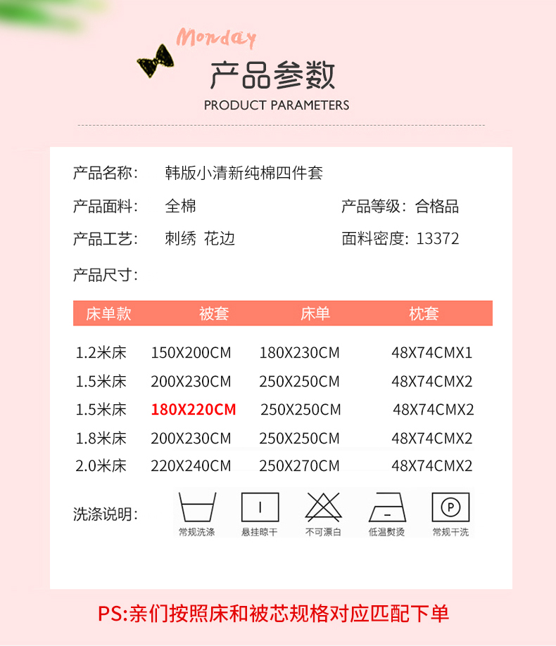 商品名称:2021韩版花边全棉四件套纯棉少女心韩式公主风 梦田