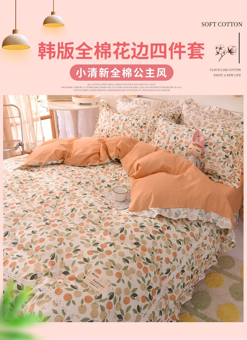 2021韩版花边全棉四件套纯棉少女心韩式公主风 梦田
