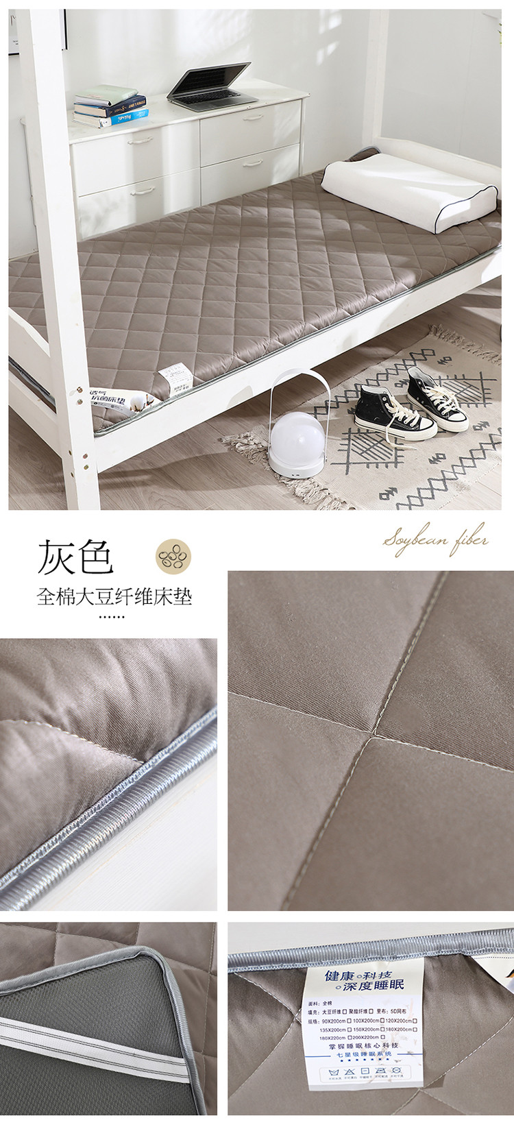 (总)亿丁点 2023新款七区调节活性印染磨毛纤维绗缝学生软床垫,灰色,蓝色,乐风,优格-灰,优格-兰