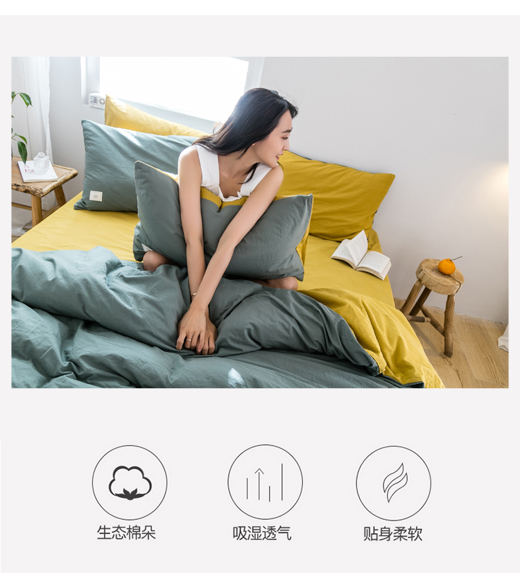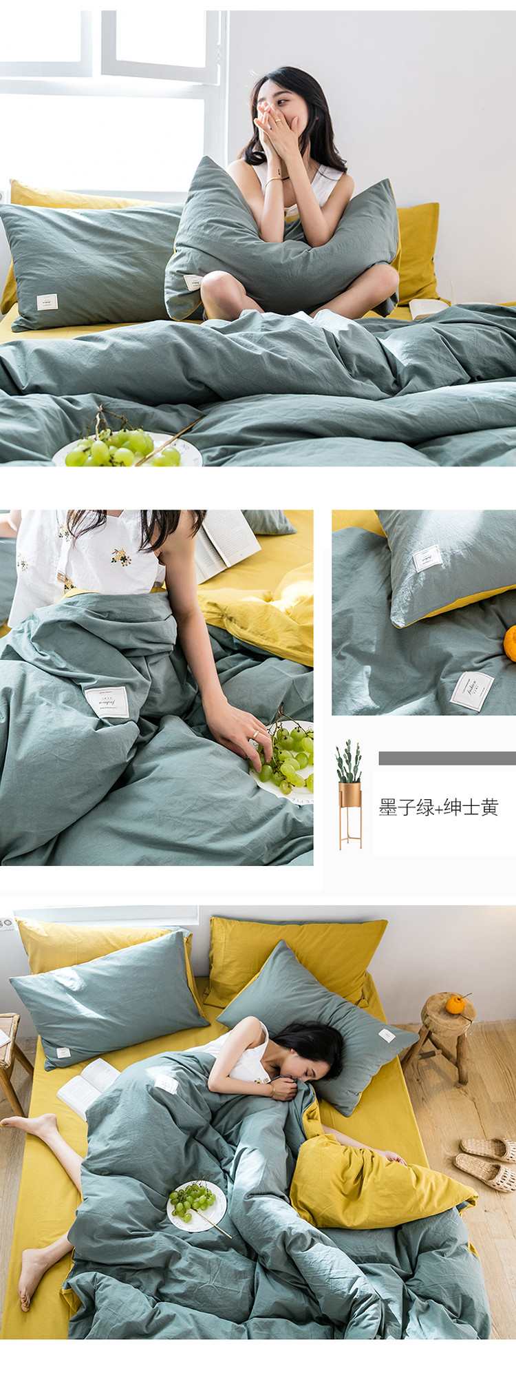 商品名称:雅居纺 2022新款全棉水洗棉四件套 墨子绿+绅士黄