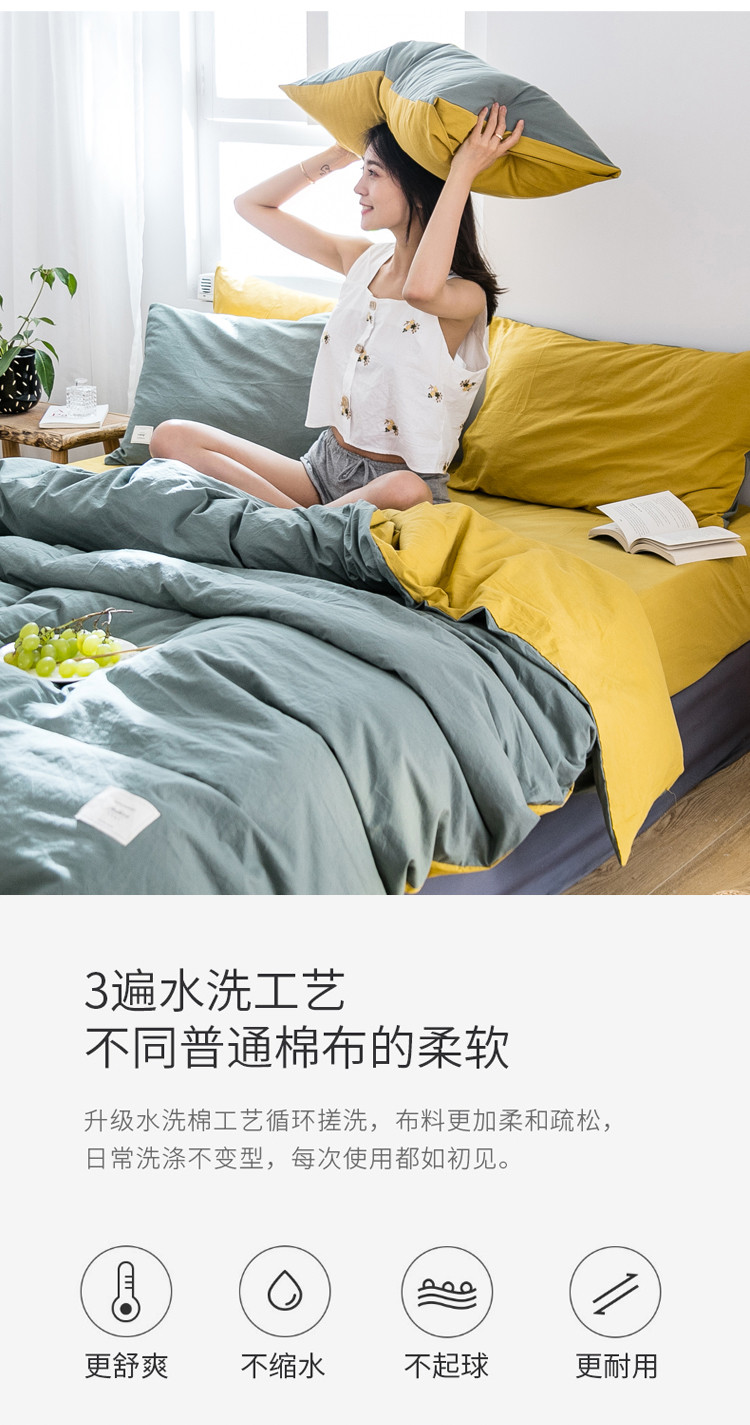 (总)雅居纺家纺 2022新款全棉水洗棉四件套,Ins粉蓝,ins浅蓝,白+墨子绿,白+绅士红,低调灰,低调灰绅士灰,豆绿+米黄,复古绿卡其,果绿绅士黄,焦糖咖啡,咖啡+卡其,米黄,米黄+明黄,米黄咖啡,米黄水绿,墨子绿,墨子绿卡其,墨子绿绅士黄,牛仔蓝低调灰,浅蓝深灰,清雅蓝绅士灰,绅士红卡其,绅士黄卡其,绅士灰,新蓝米黄
