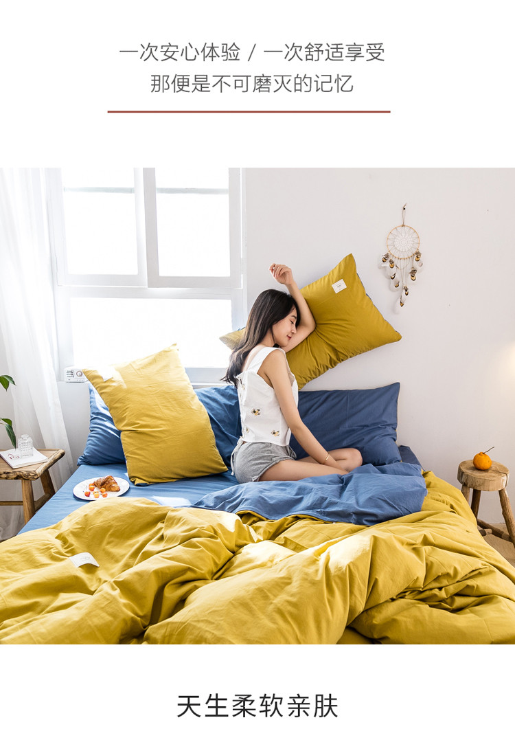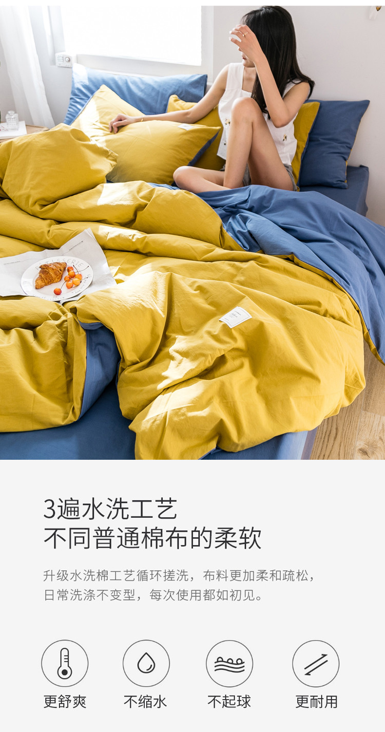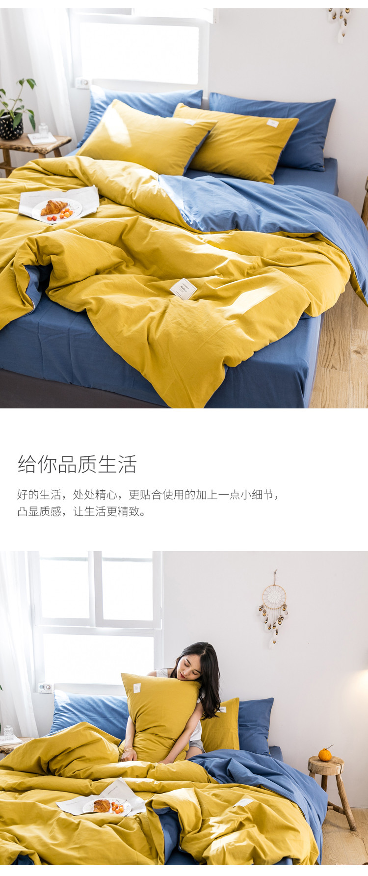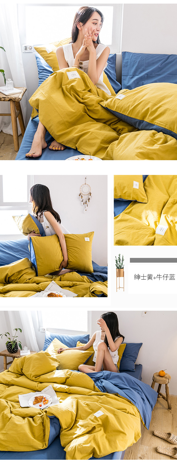 雅居纺 2022新款全棉水洗棉四件套 绅士黄+牛仔蓝