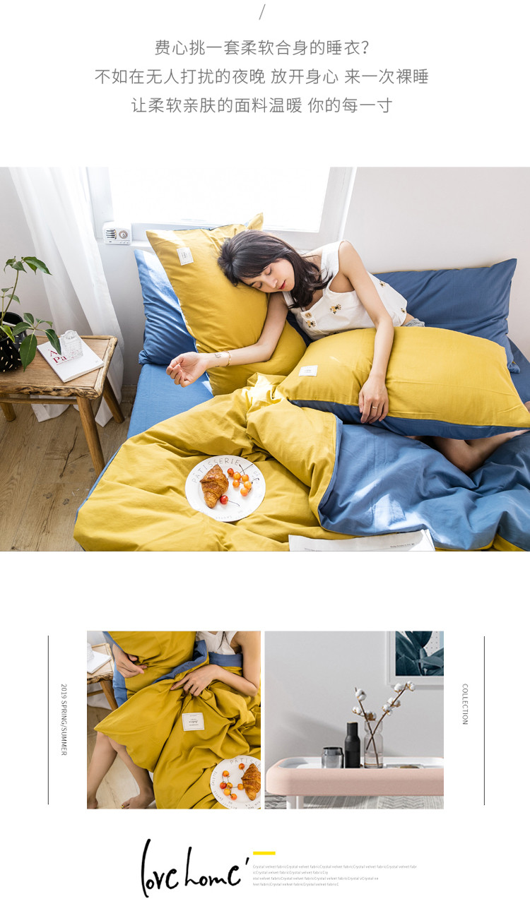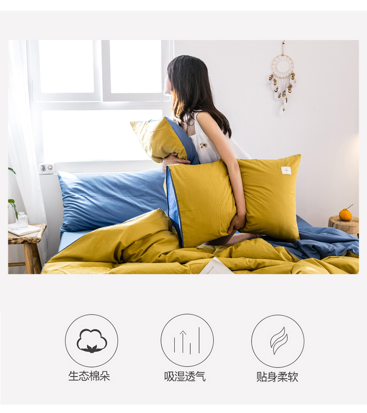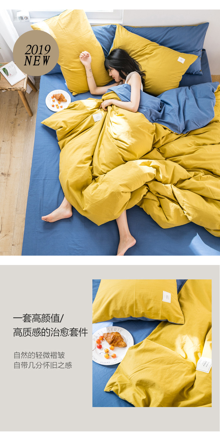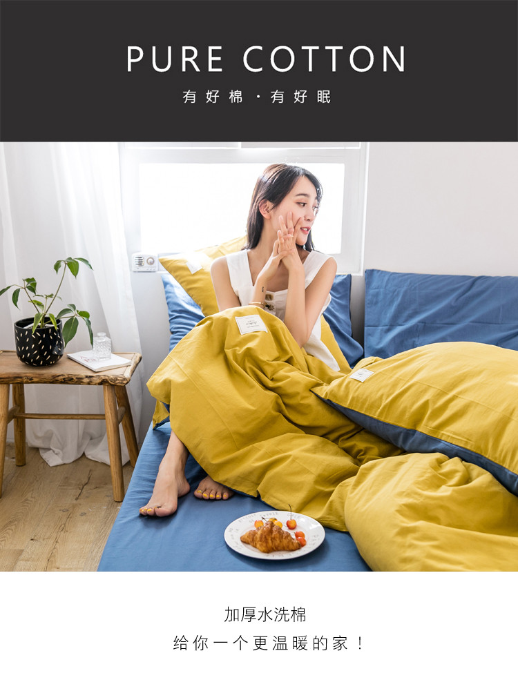 雅居纺 2022新款全棉水洗棉四件套 绅士黄+牛仔蓝