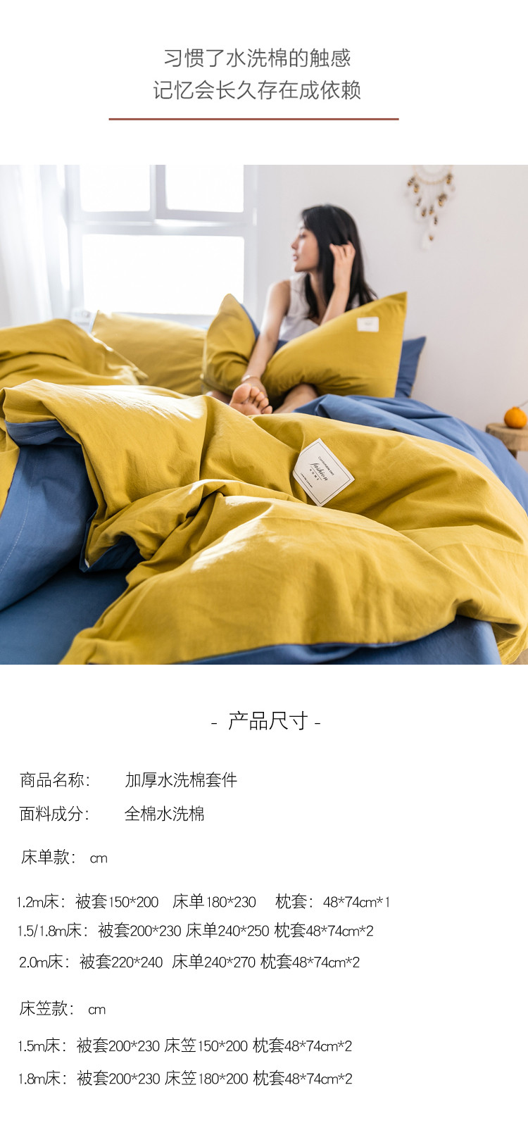 商品名称:雅居纺 2022新款全棉水洗棉四件套 绅士黄+牛仔蓝