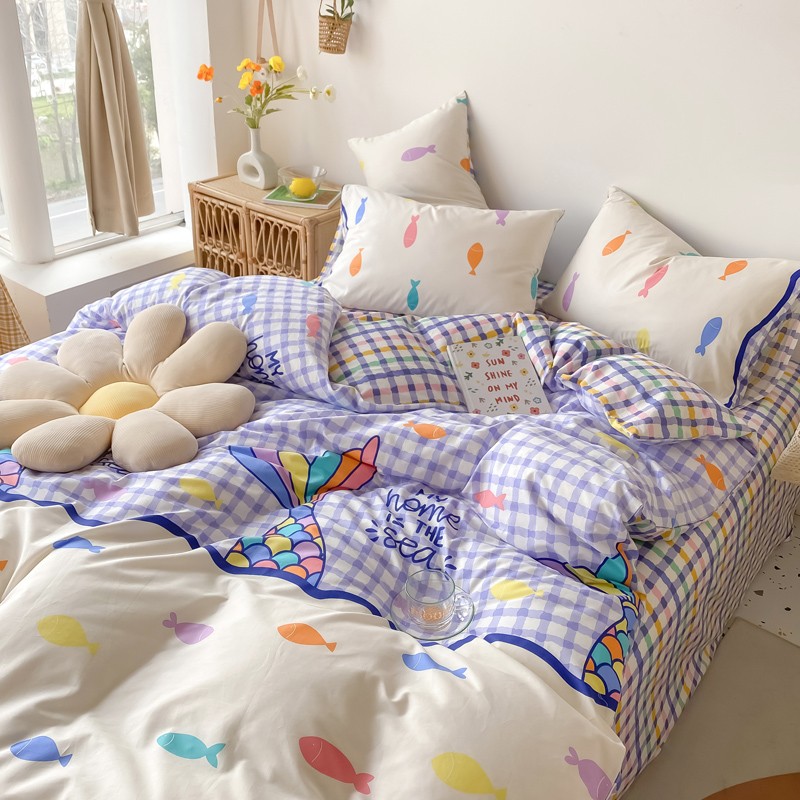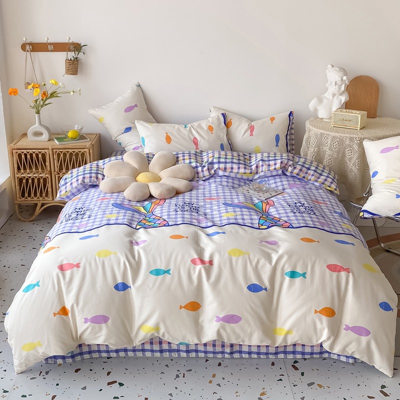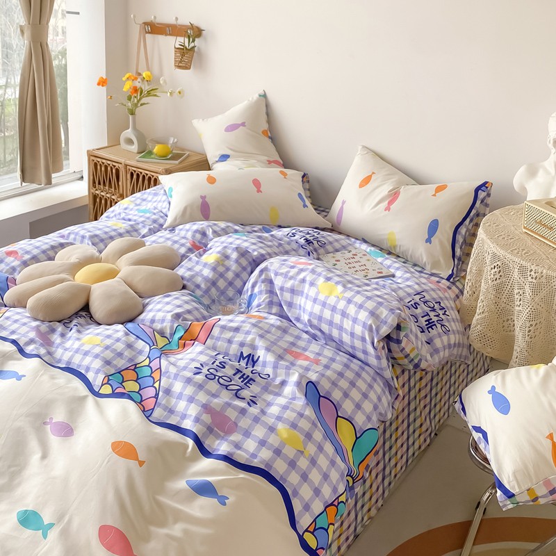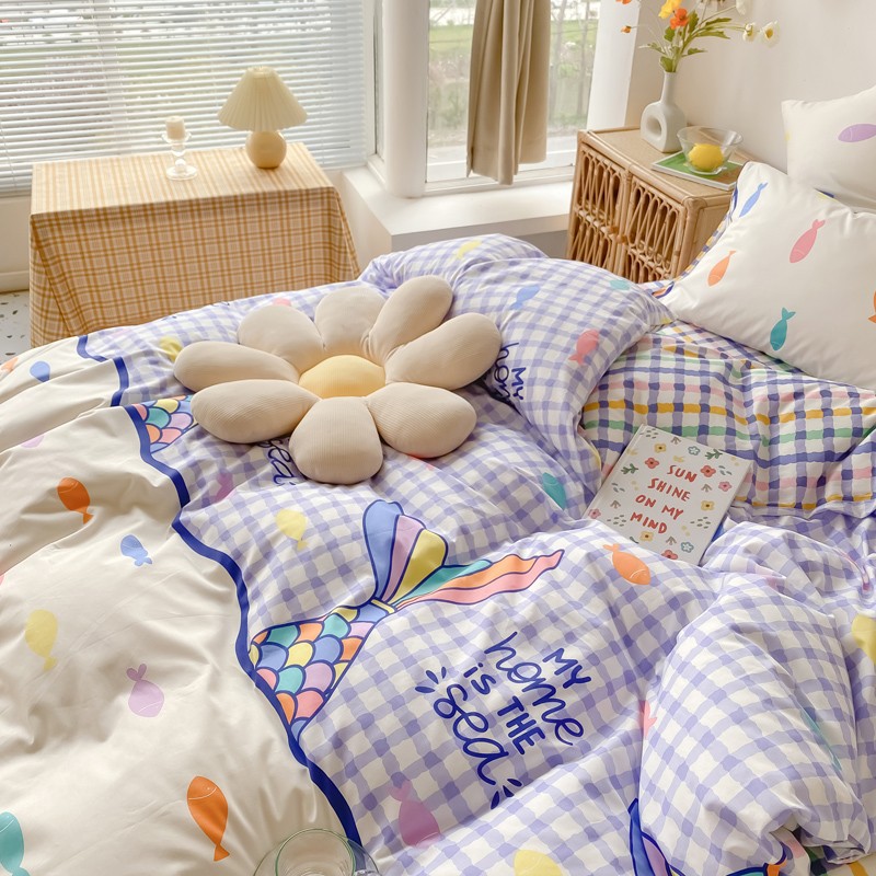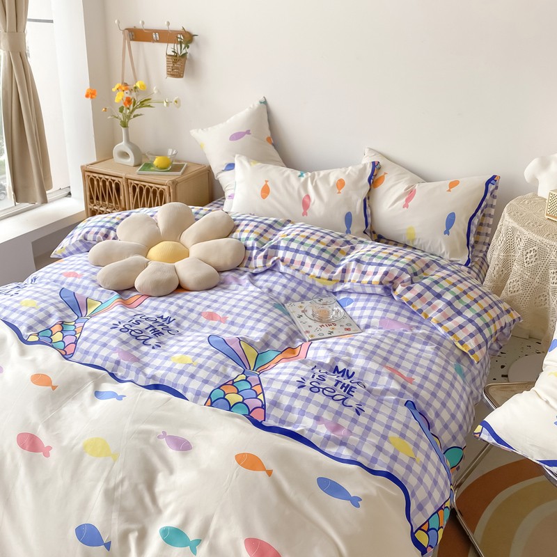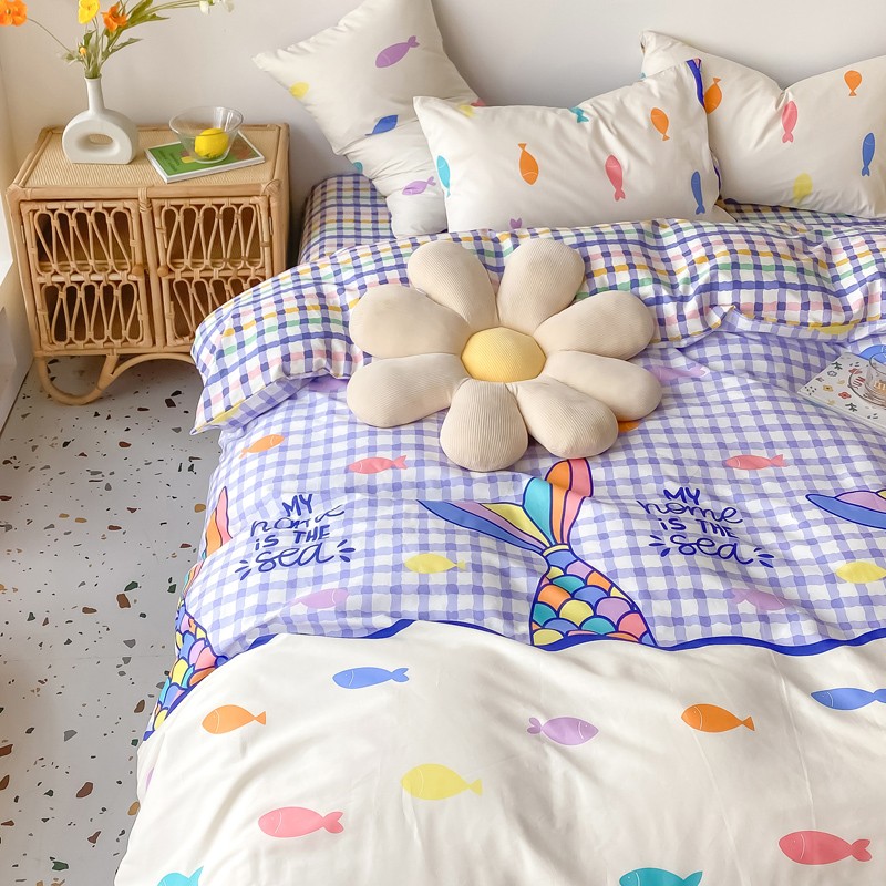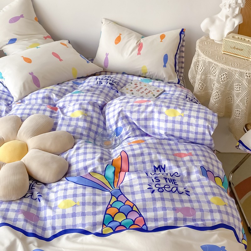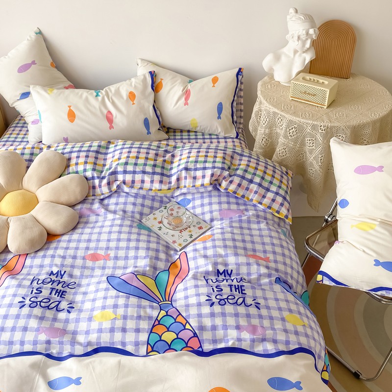 眠屿家纺 2021新款全棉印花四件套 美人鱼