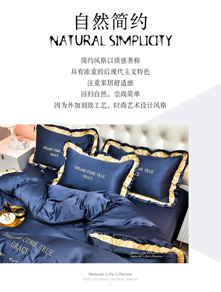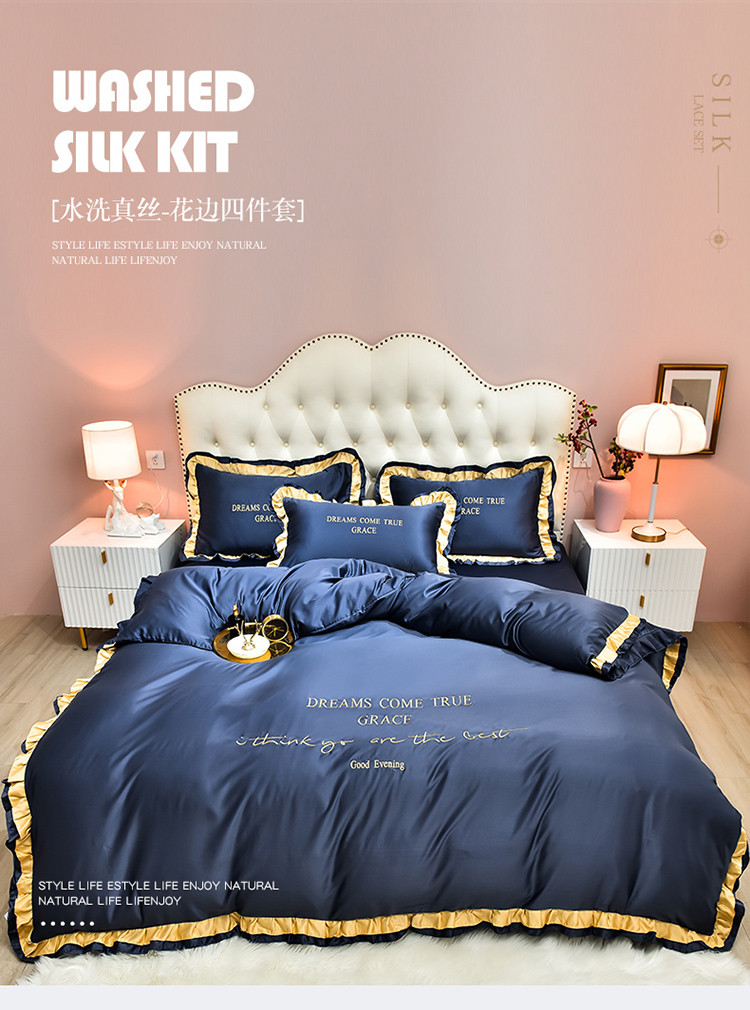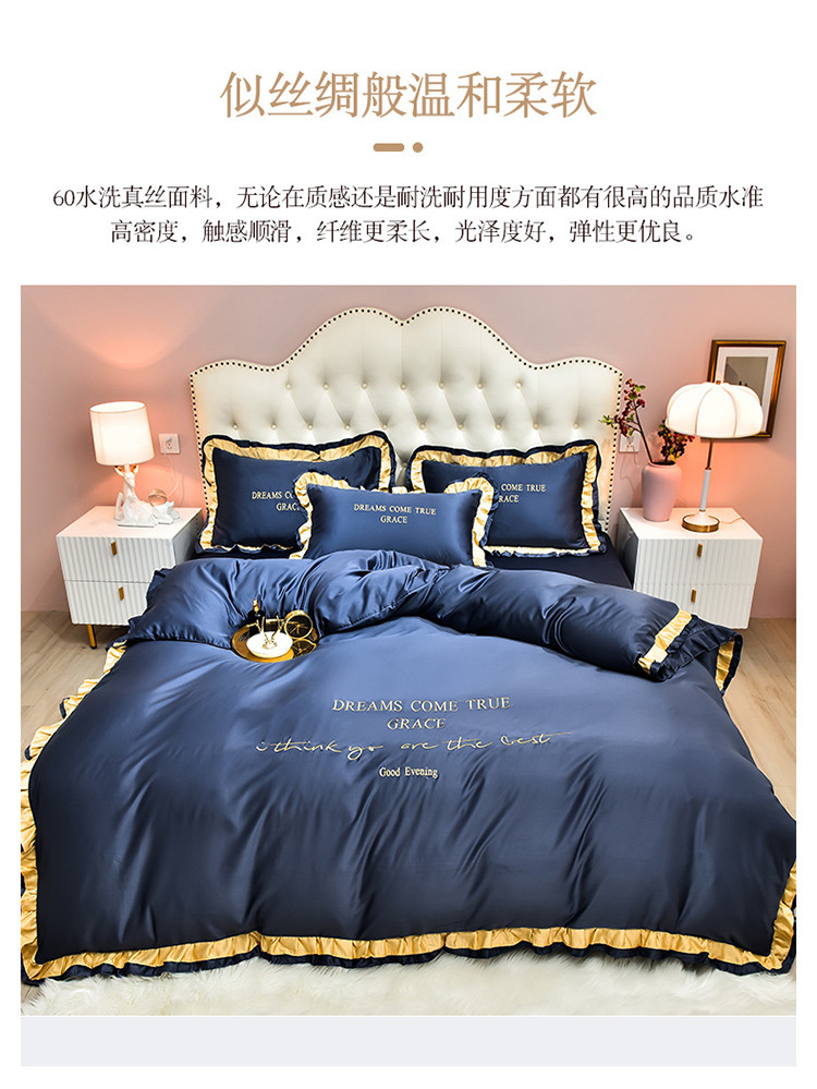 商品名称:2021新款水洗真丝四件套诺曼相机图 蓝灰