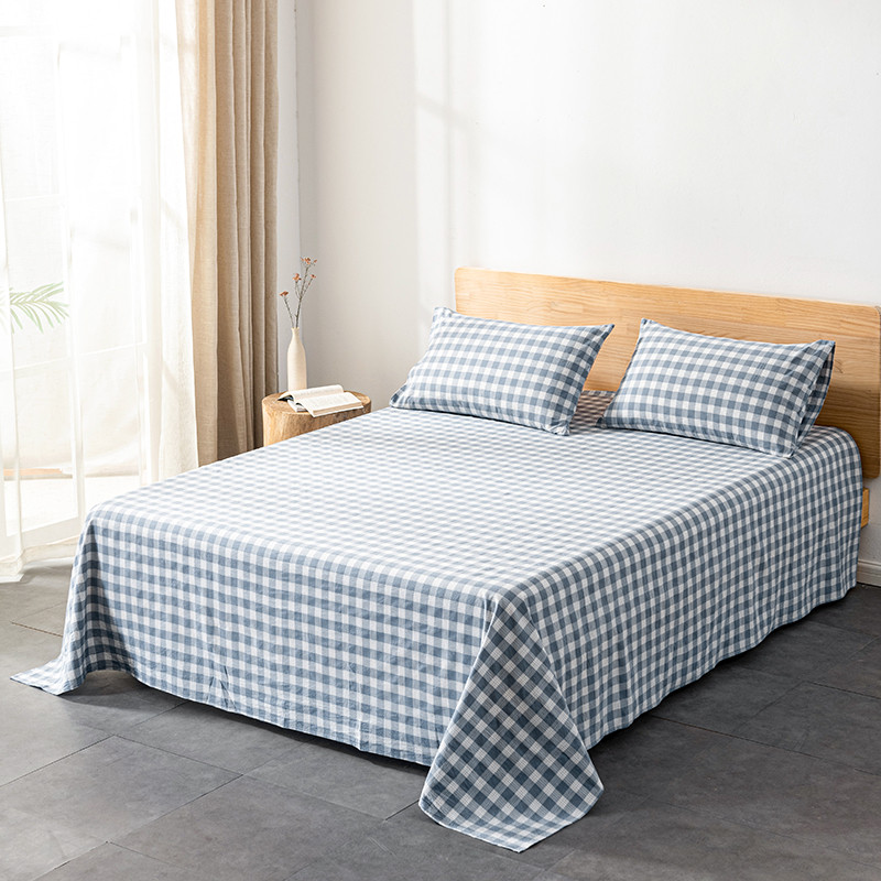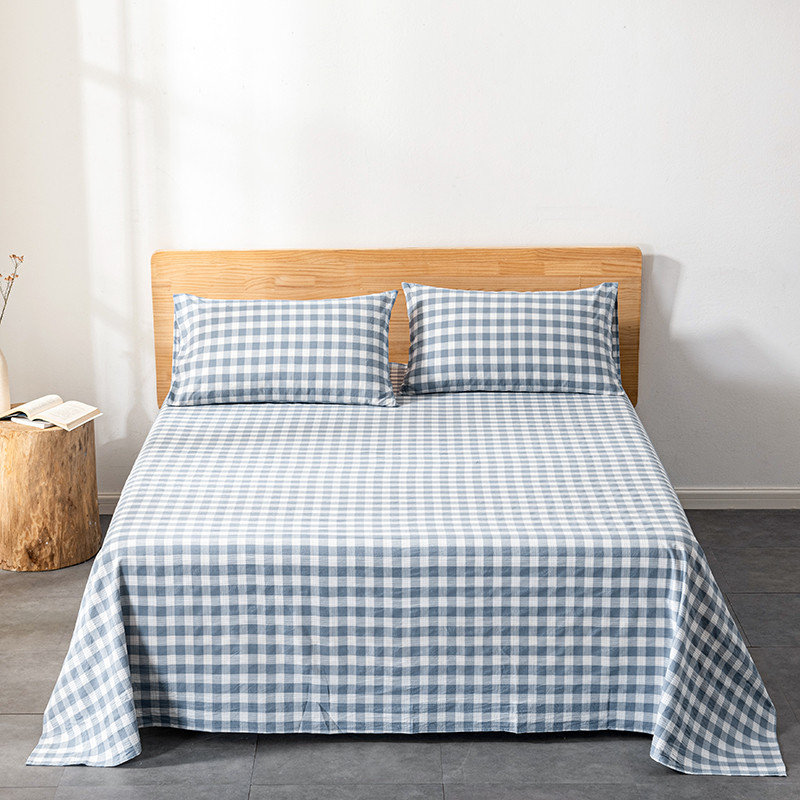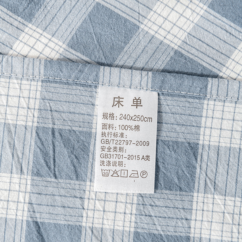 商品名称:久典 2022新款色织全棉水洗棉单品床单 清雅蓝