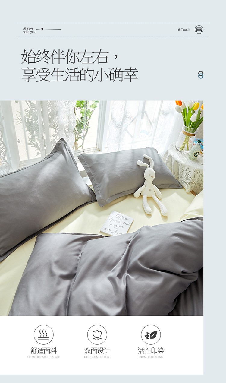 商品名称:贝拉梦 2021新款纯色拼色美棉系列四件套 浅灰米色