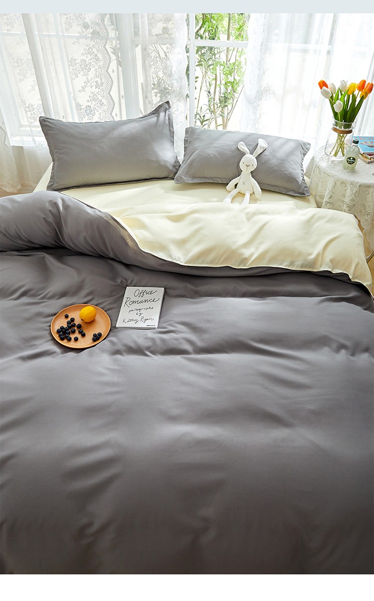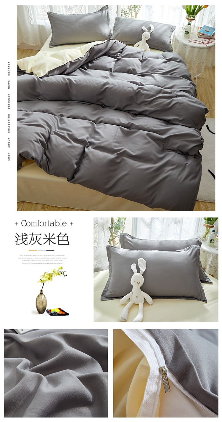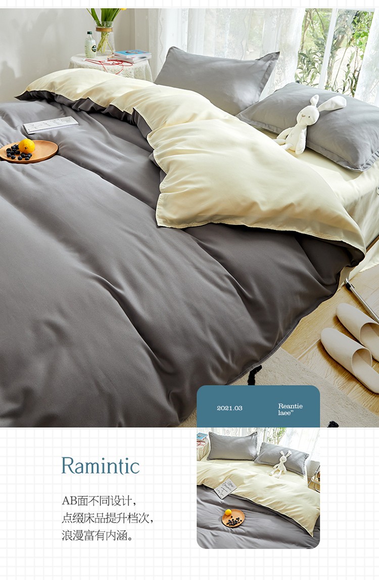 贝拉梦 2021新款纯色拼色美棉系列四件套 浅灰米色