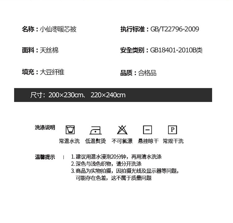 商品名称:(总)心悦家纺 2021新款小仙枣暖芯被