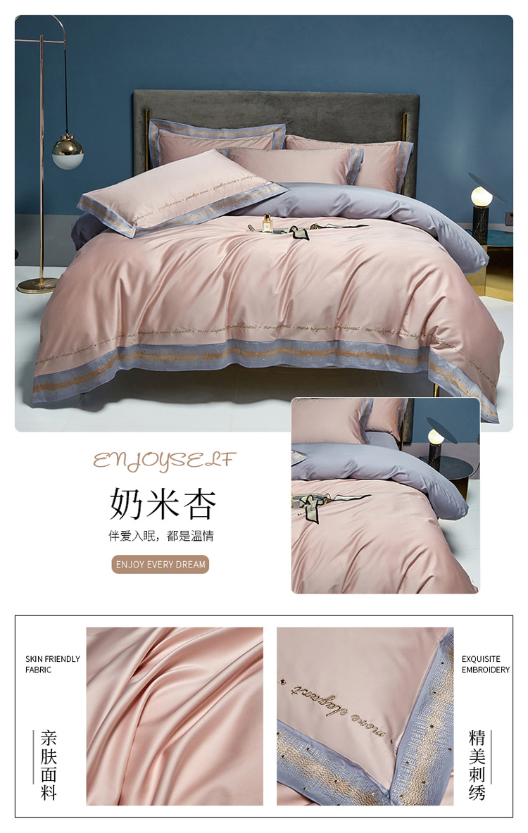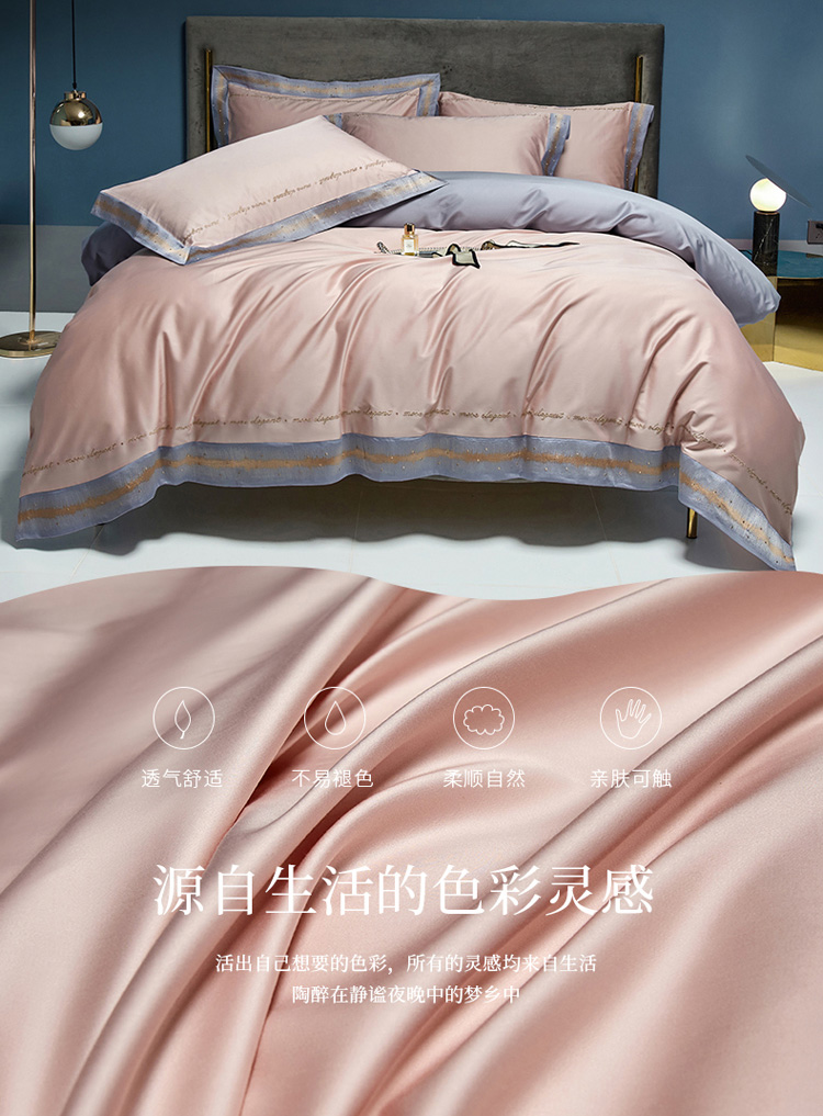 (总)爱缦 新款60支莱赛尔四件套-至真系列,蓝米驼,米白粉,浅紫,玉粉