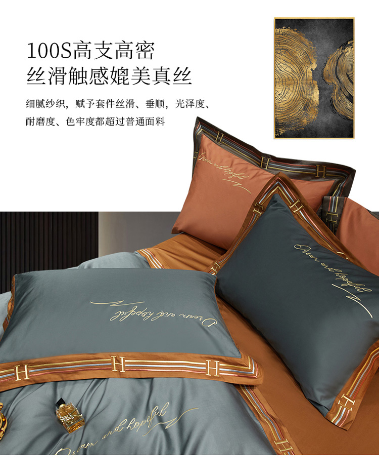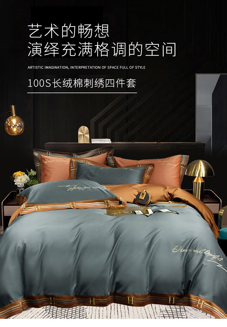 爱缦 2021新款罗曼尼系列100支长绒棉奥棉四件套 绅士灰