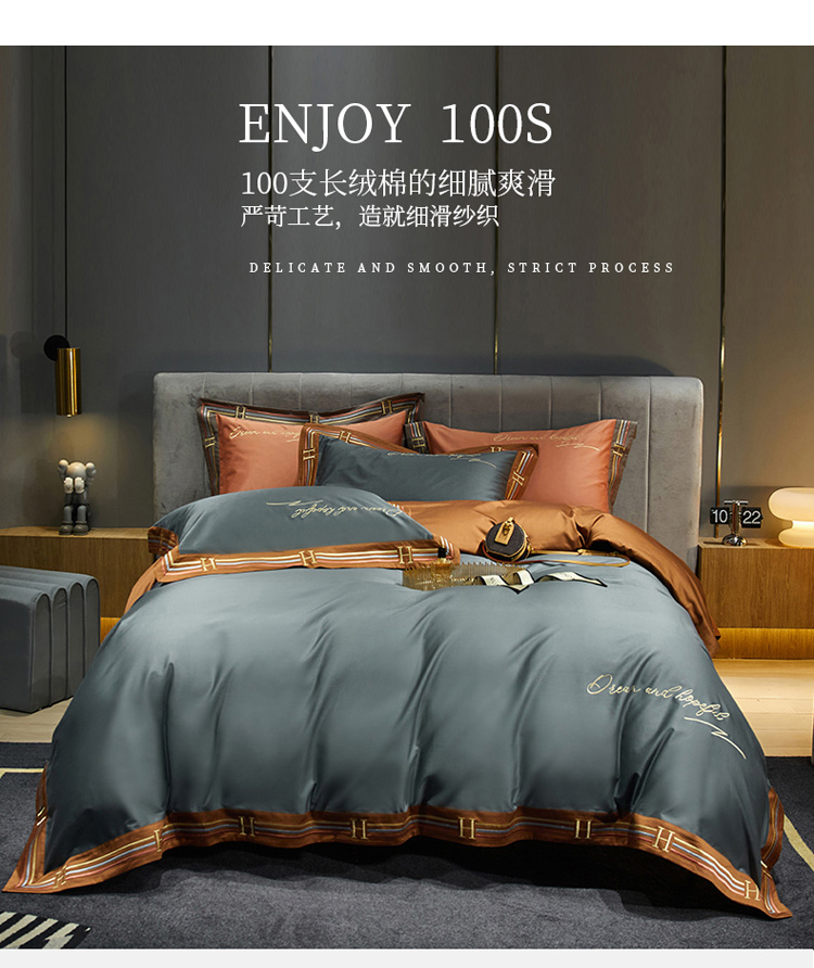 商品名称:爱缦 2021新款罗曼尼系列100支长绒棉奥棉四件套 绅士灰