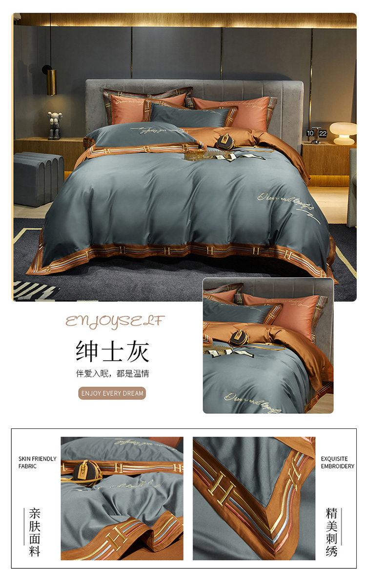 (总)2024新款A类60支陶瓷空气磨毛四件套--雾恋灰系列,雾恋灰