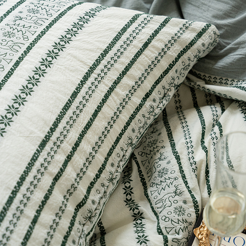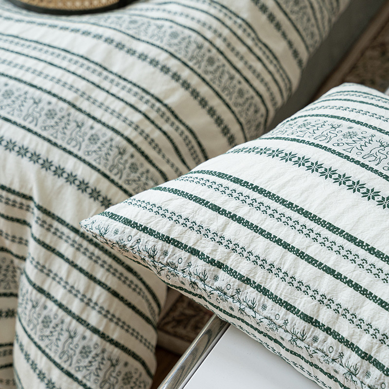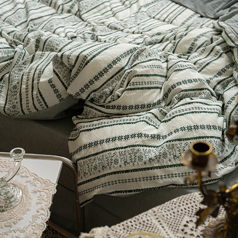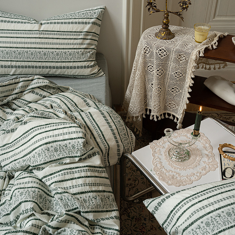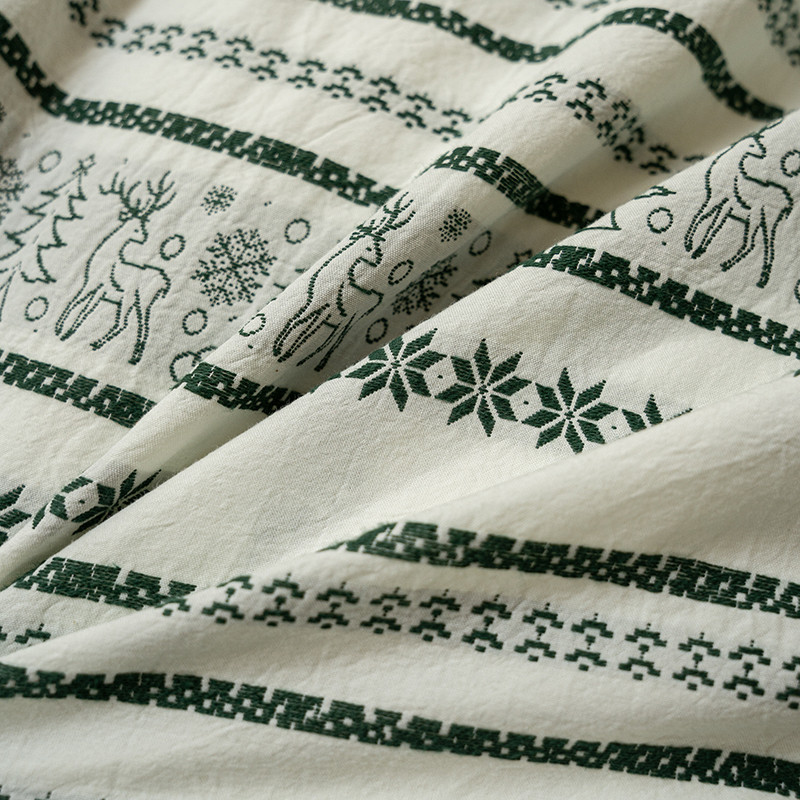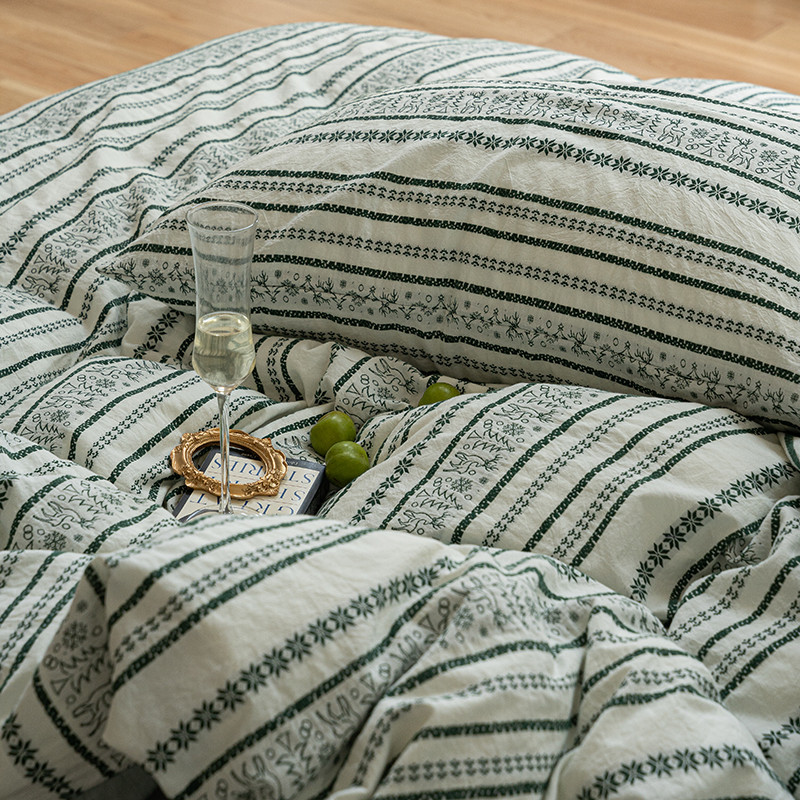 恋恋三季色织提花工艺款林深时见鹿系列四件套棚拍图墨绿