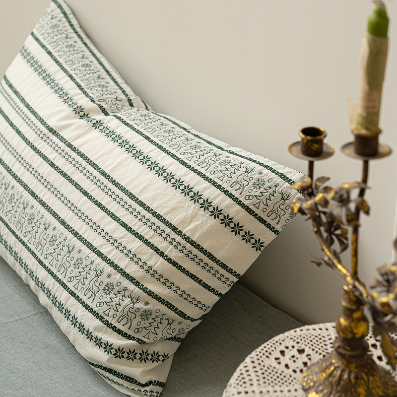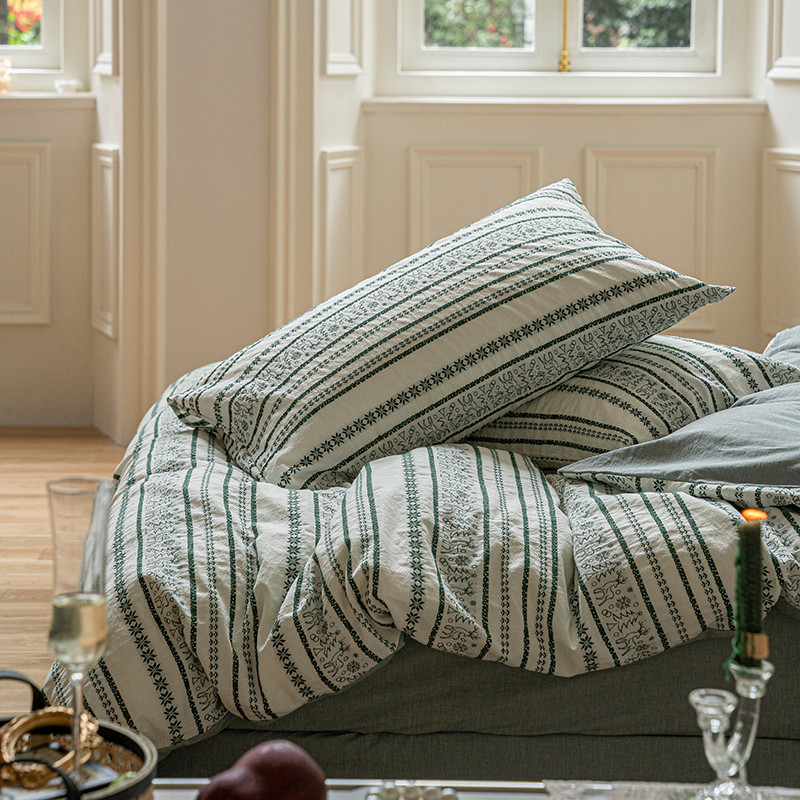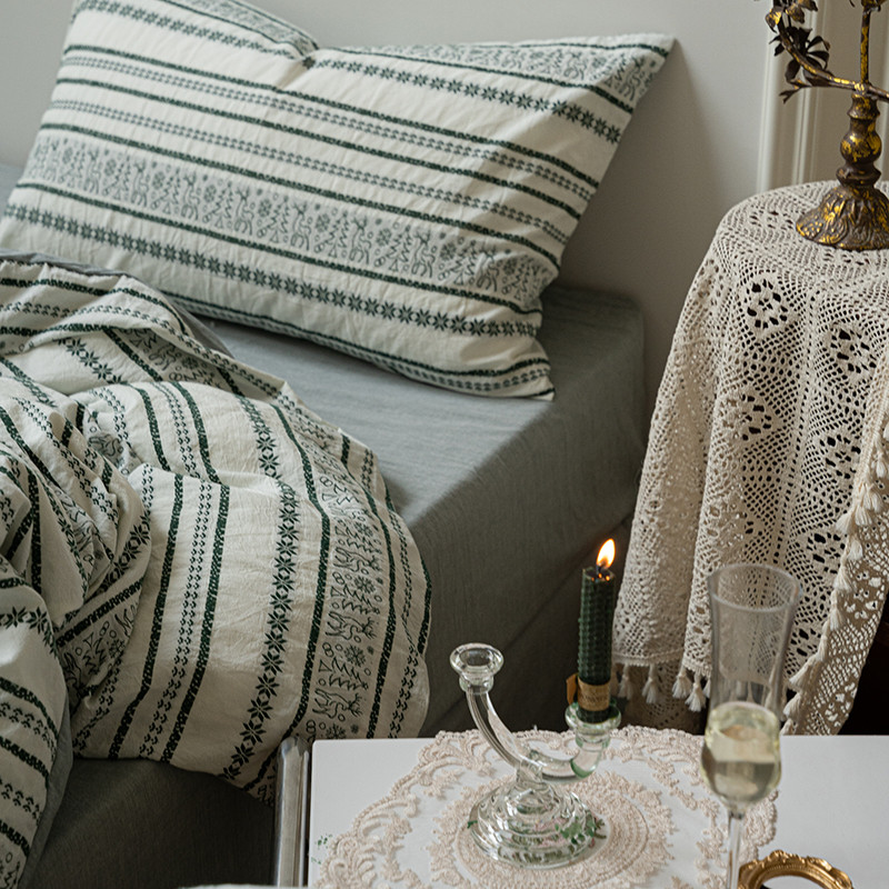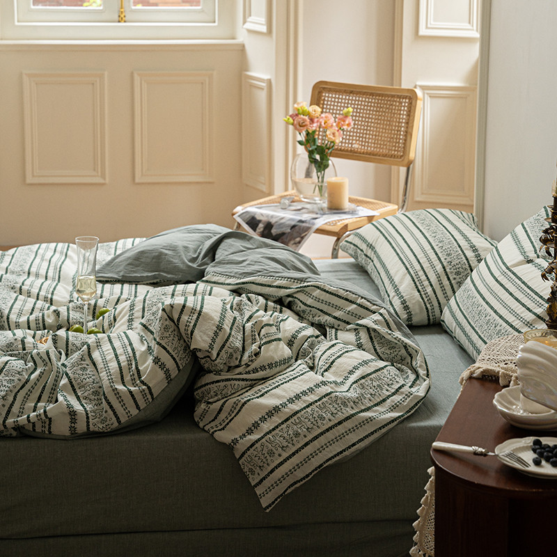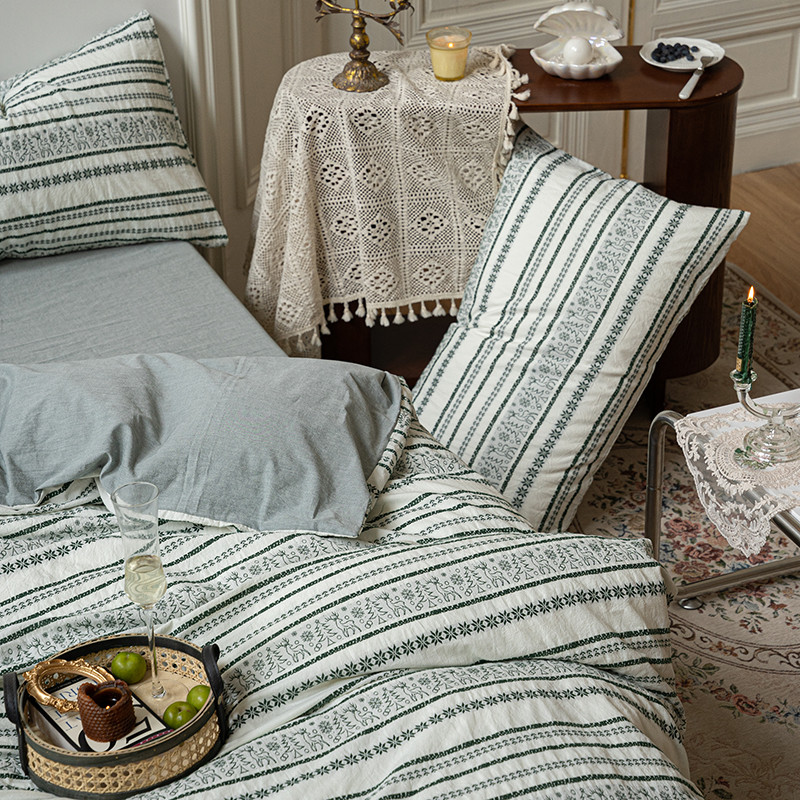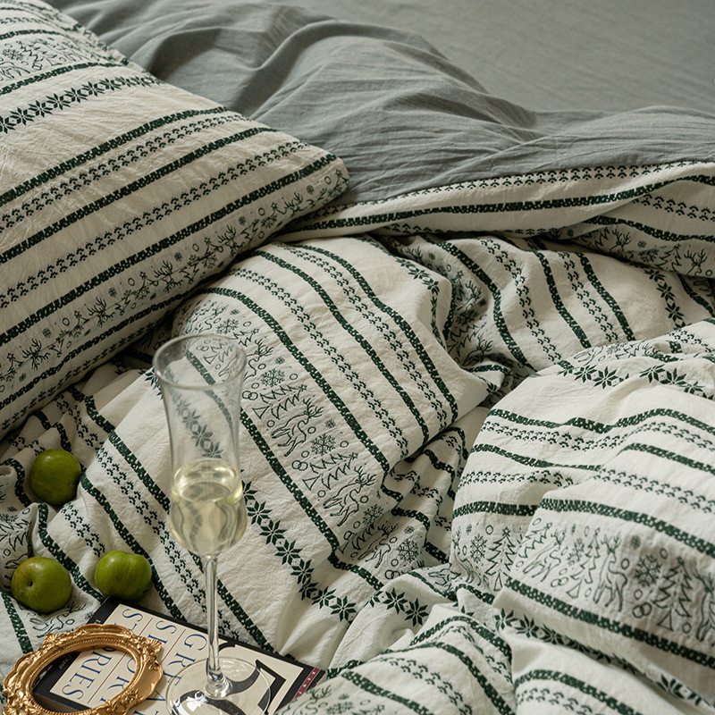 恋恋三季色织提花工艺款林深时见鹿系列四件套棚拍图墨绿