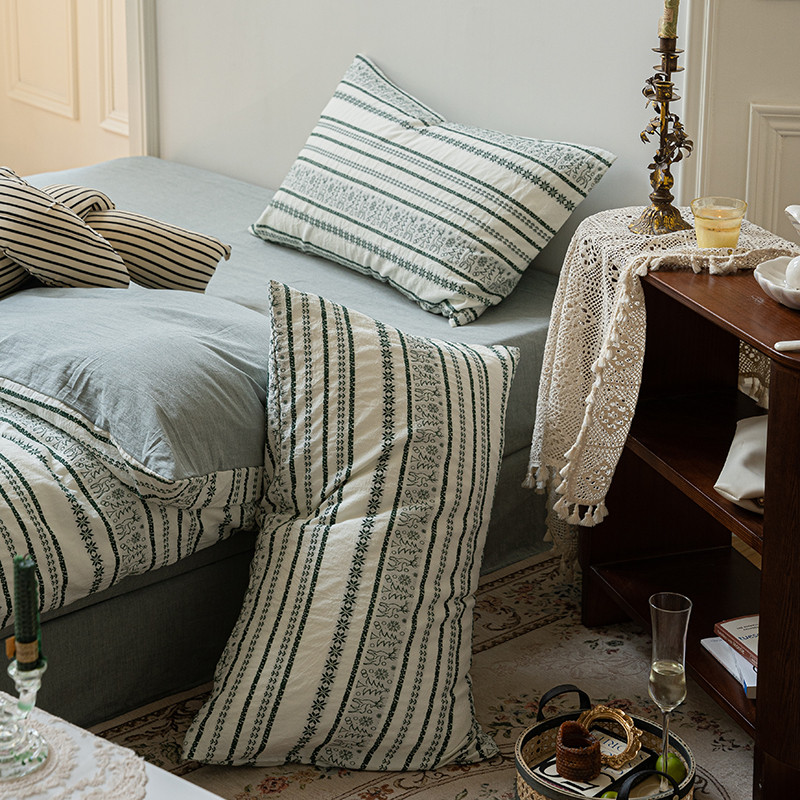 (总)恋恋三季 2026新款40支纯棉绑带款四件套单品单枕套,组合图,绑带款:霜糖,绑带款:星蓝条,冰沙绿,霜糖,星蓝条,盐白