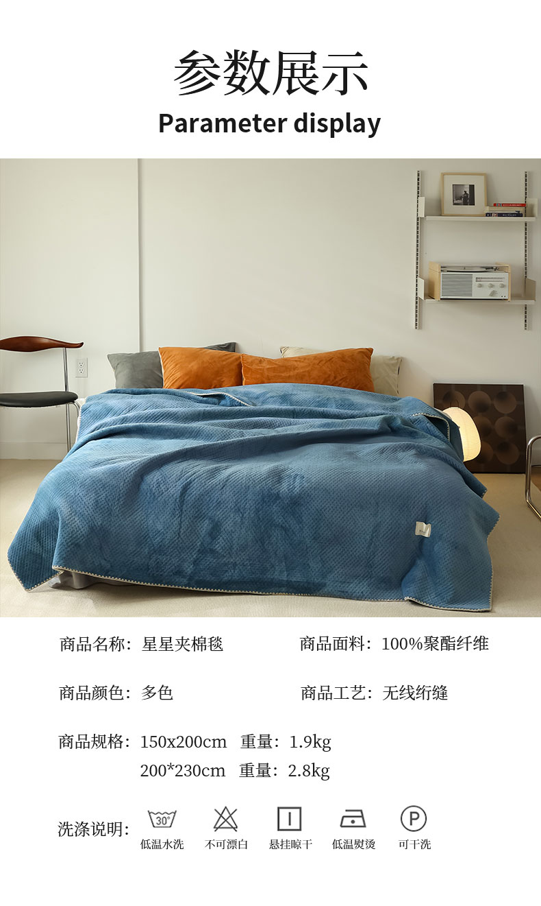 商品名称:法芙娜家纺 超声波牛奶绒毛毯 星星毯 宾利蓝